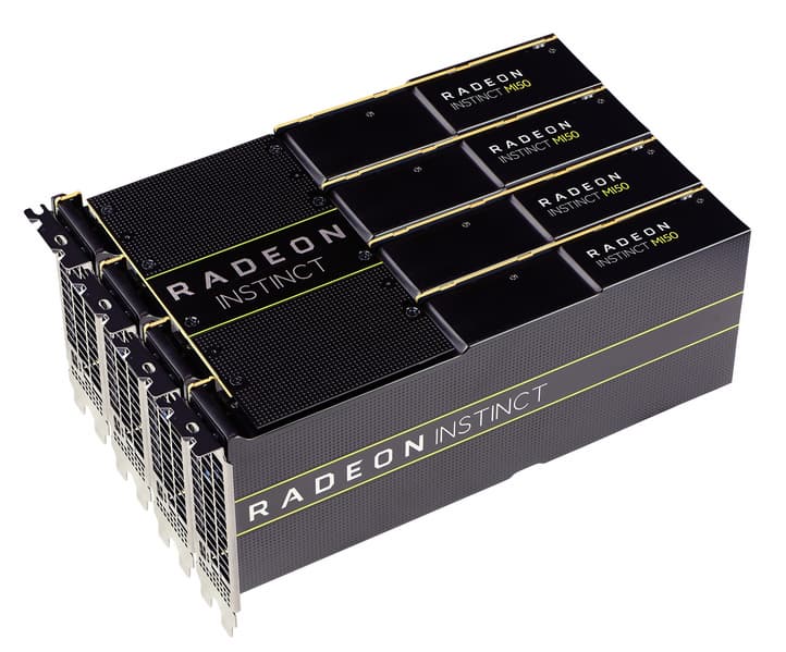 В свою очередь, младшая модель Radeon Instinct MI50 обладает лишь чуть меньшей скоростью вычислений, обеспечивая пиковую производительность FP64-операций на уровне 6,7 терафлопс, также являясь эффективным решением для широкого спектра задач глубокого обучения, которое подходит и для поддержки виртуальных рабочих столов, конфигураций Desktop-as-a-Service и облачных сред.