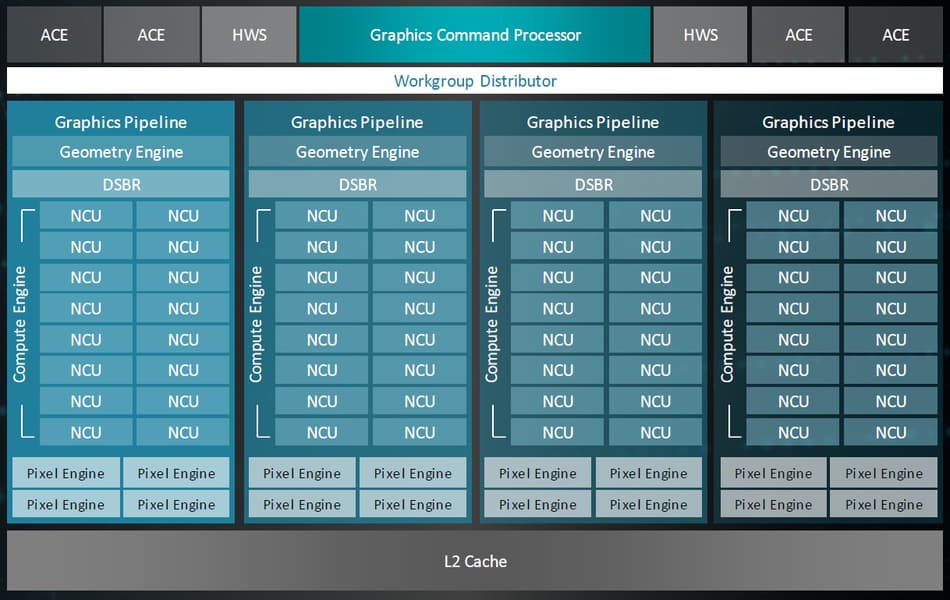 Улучшенная архитектура Vega специально предназначена для различных вычислений, включая столь модное сейчас глубокое обучение. Нет, специализированных блоков, вроде NPU или тензорных ядер в Vega не добавили, зато новый графический процессор умеет увеличивать производительность вычислений при сниженной точности, в отличие от предыдущего варианта этого GPU.