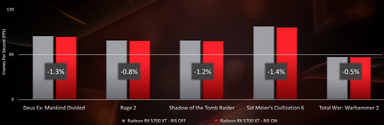 Кроме этого, Radeon Image Sharpening (RIS) умеет также качественно повышать разрешение из низкого в рабочее разрешение монитора. На данный момент возможность открыта только для видеокарт на основе графических процессоров Navi для игр, использующих Vulkan, DirectX 9 и DirectX 12. Зато технология поддерживается большим количеством игр и не требует никаких изменений в их коде.