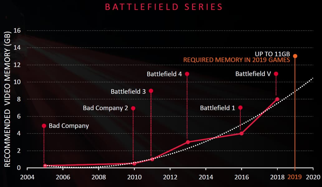 Неудивительно, что для решений этого ценового диапазона в AMD решили отказаться от очень интересной, но весьма дорогой HBM2-памяти. Тем более, что уже получила широкое распространение быстрая GDDR6-память, ставшая логичным выбором для нового GPU. Да и объем видеопамяти в 8 ГБ кажется единственно правильным вариантом для этого ценового диапазона. 4 ГБ — уже слишком мало, а 16 ГБ — перебор, не имеющий никакого смысла для игровых решений.