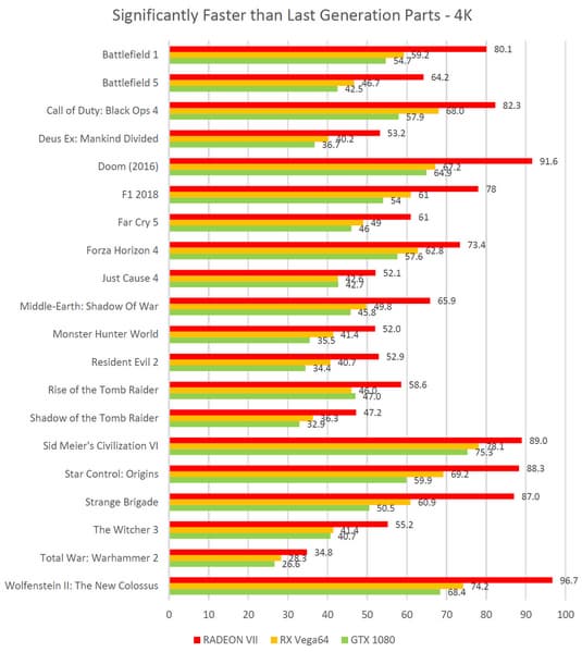 Судя по этим измерениям, проведенным в наборе популярных игровых приложений, обе видеокарты семейства Radeon RX 5700 смотрятся очень неплохо по сравнению со своими прямыми конкурентами. В основном новинки опережают соответствующие видеокарты Nvidia, и в среднем они обеспечивают чуть более высокую скорость рендеринга.