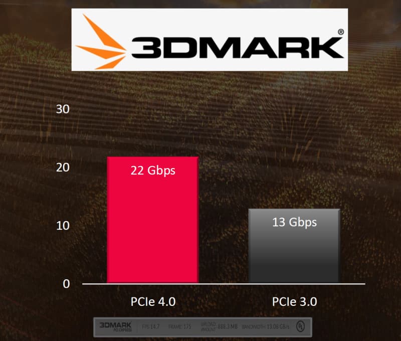 В случае установки видеокарт новой серии в системную плату на базе чипсета AMD X570, у вас получится решение с полной поддержкой PCIe 4.0 — единственное имеющееся на рынке. Создатели общепринятого индустриального бенчмарка 3DMark уже создали специальный тест для измерения производительности шины PCI Express, который показывает серьезное превосходство новой версии шины над предыдущей.