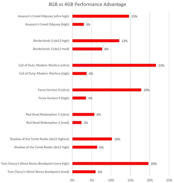 А вот исход битвы с соперниками из стана Nvidia будет определяться ценами. 4-гигабайтная версия RX 5500 XT демонстрирует в целом такую же производительность, как мы наблюдали у GTX 1650 Super, то есть является прямым конкурентом последнему — поэтому важно, чтобы и цены ему соответствовали. И поскольку 8-гигабайтных GTX 1650 Super не существует, Radeon RX 5500 XT 8 ГБ смотрится более выигрышно и даже может соперничать с картами на GTX 1660, которые оснащены 6 ГБ памяти. Но опять же, все будут решать цены.