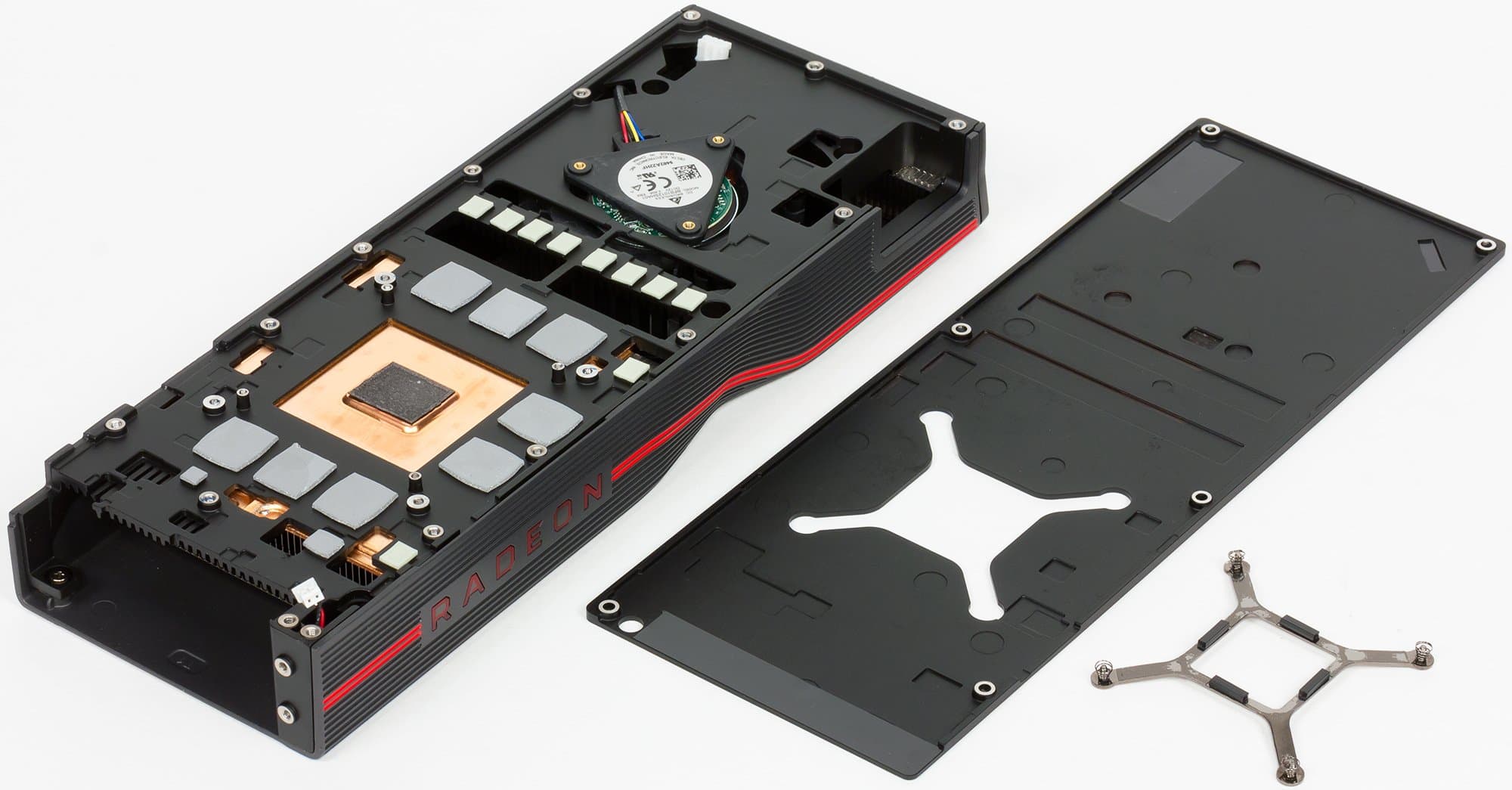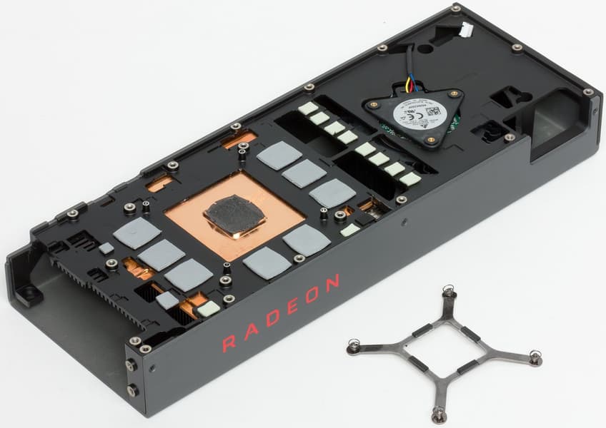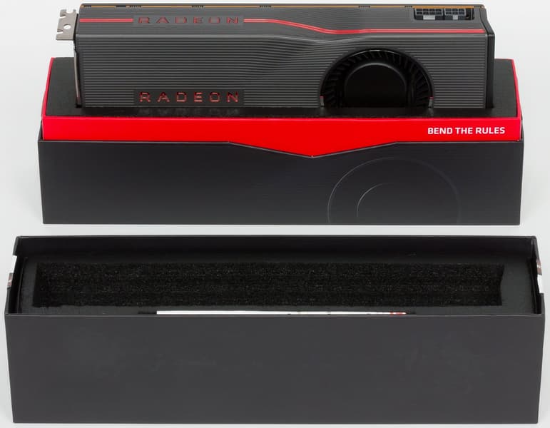 В отличие от обычной Radeon RX 5700, которая похожа скорее на Radeon VII, дизайн корпуса старшей модели XT был переделан, он имеет явную «вмятину» на одной из граней, которая смотрится довольно забавно. В остальном, это кулер того же стиля, что и во всех предыдущих продуктах компании на протяжении многих лет — с испарительной камерой, отводящей тепло от GPU к радиатору. Конечно, кулер оптимизирован по сравнению с его предшественниками, для достижения лучшего охлаждения и меньшего шума. Все равно в нестандартных видеокартах партнеров компании будут применяться другие, совершенно разные решения.