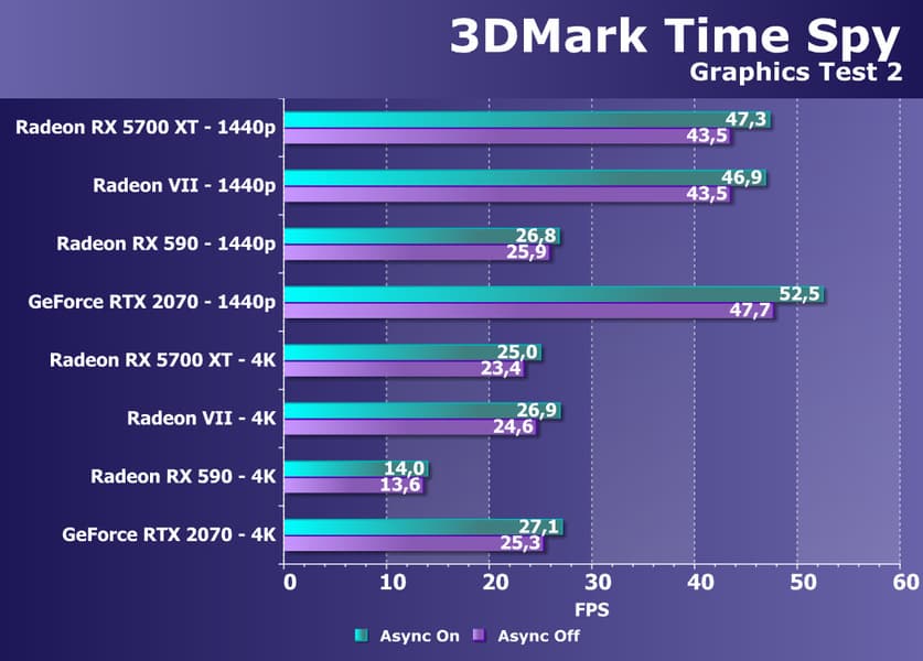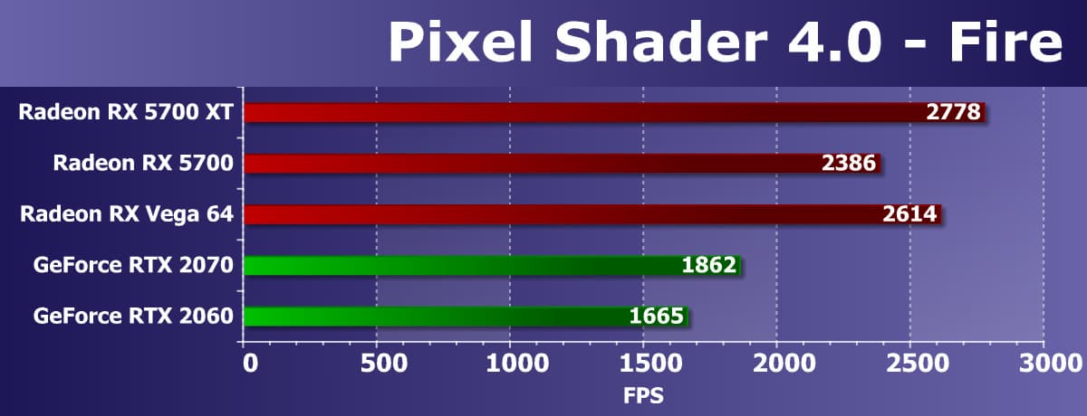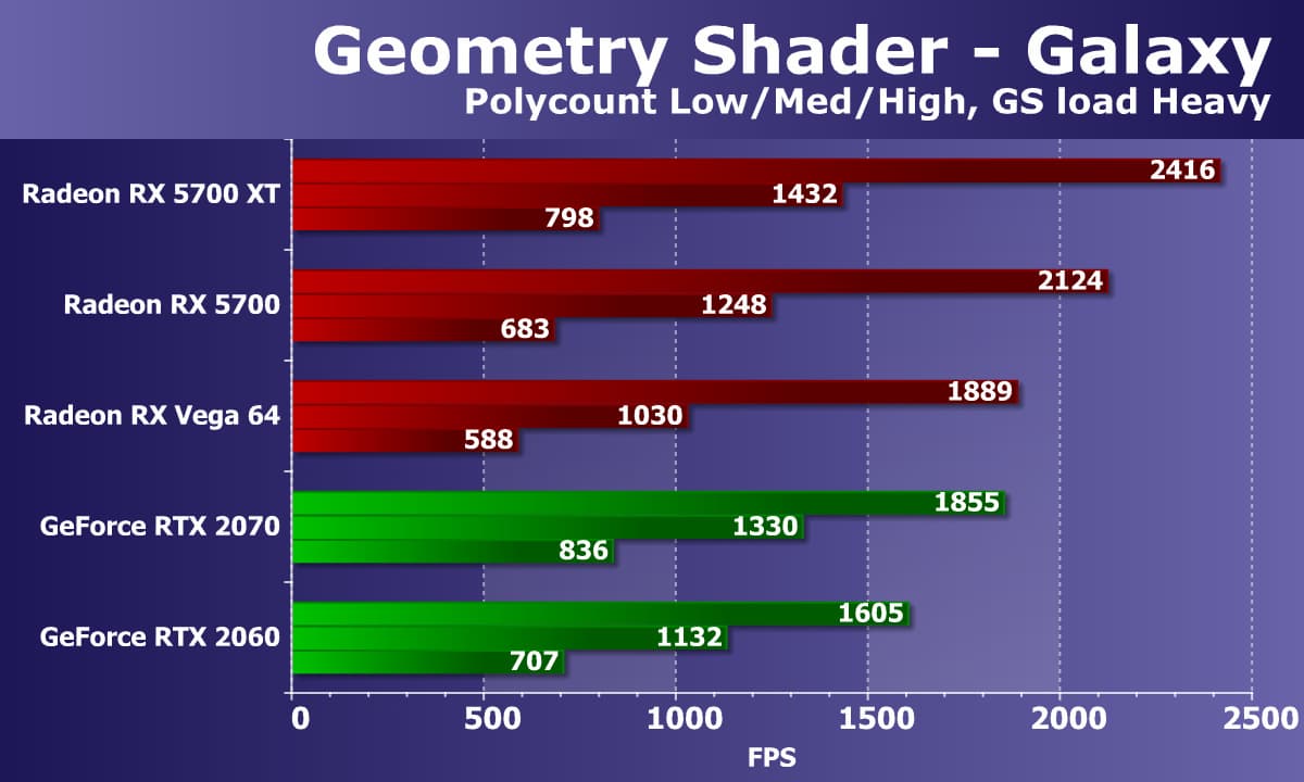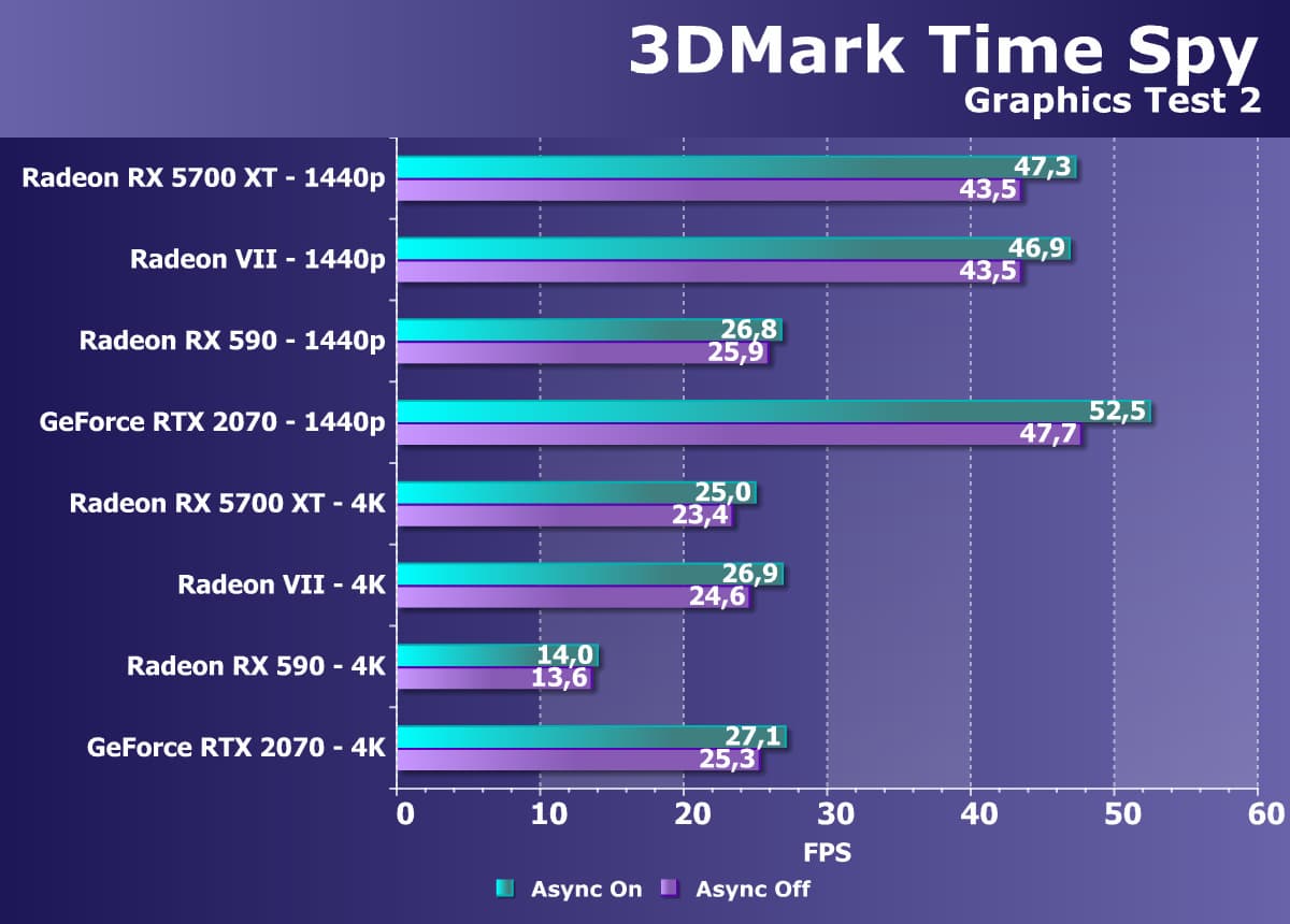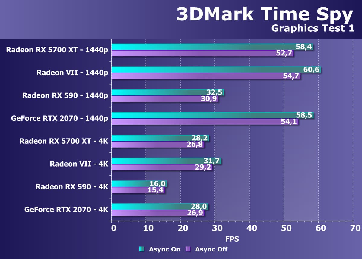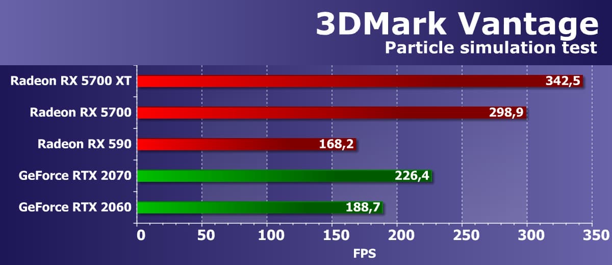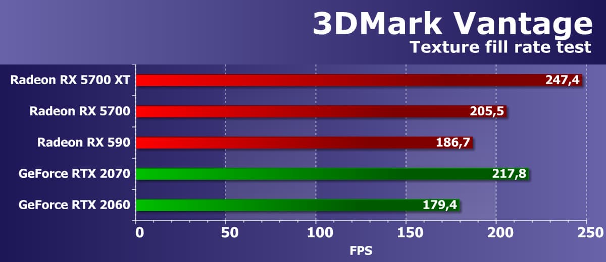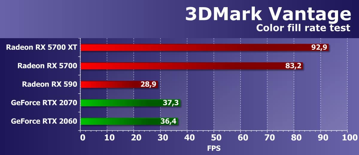 Видеокарты семейства Radeon RX 5700, основанные на двух модификациях графического процессора Navi 10 новой архитектуры RDNA, заняли на рынке игровых видеокарт место Vega 56 и Vega 64, которые слишком дороги в производстве. В наших синтетических тестах новинки за редким исключением показали очень хорошие результаты с явным позитивным влиянием архитектурных улучшений RDNA, повысивших эффективность новых GPU, также очень хорошо сказалась и немалая рабочая частота GPU, которую позволил достичь техпроцесс 7 нм. Во многих синтетических тестах Radeon RX 5700 XT опередил не только Radeon RX 590, но и RX Vega 64, и нередко был на одном уровне с Radeon VII.