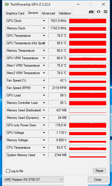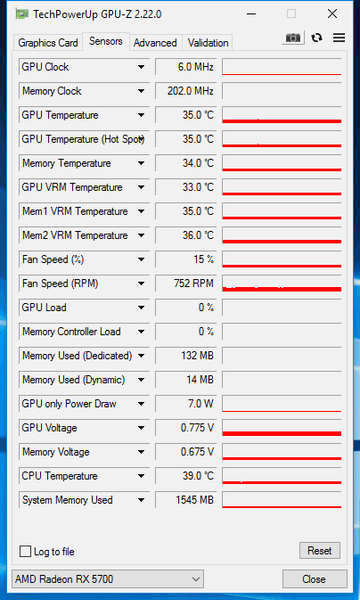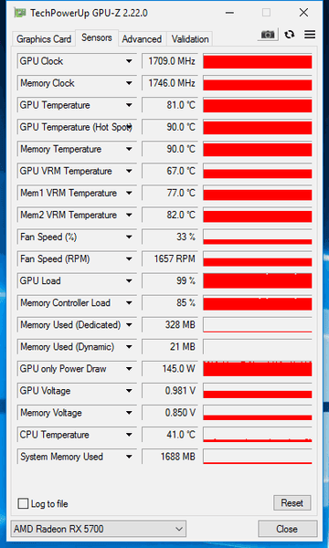 В режиме максимальной нагрузки в 3D температура достигала 78-81 °C. Вентиляторы при этом раскручивались выше 2100 оборотов в минуту у 5700 XT (шум вырастал до 42,2 дБА) и выше 1660 оборотов в минуту у 5700 (шум вырастал до 25,3 дБА). Так что у RX 5700 XT кулер весьма шумный под нагрузкой, а вот у 5700 — относительно тихий. Такова цена использования «турбин» — не зря конкурент AMD в свое время отказался от СО этого типа в своих референсных картах, улучшив ситуацию с шумом.