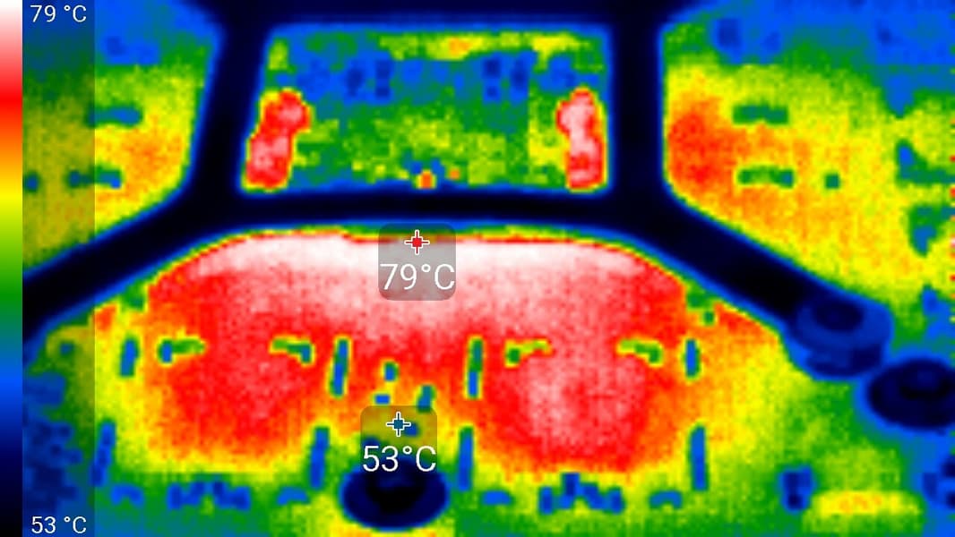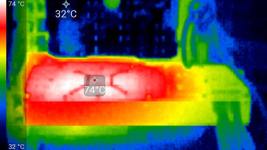 Максимальный нагрев у обеих карт — центральная часть карты в области GPU.