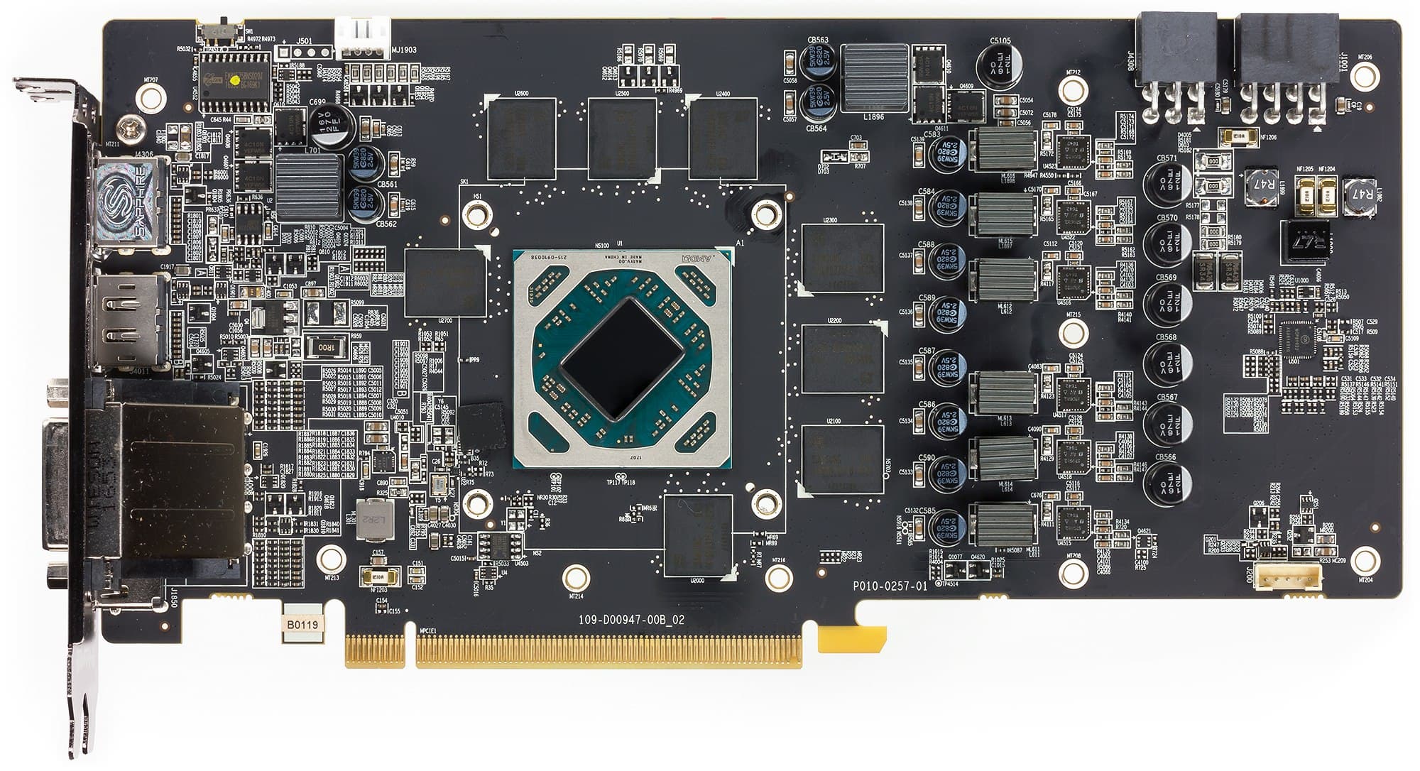 Графический процессор Navi 10 основан на совершенно новой архитектуре RDNA которая была спроектирована для оптимального распределения загрузки исполнительных блоков графическими и вычислительными задачами, которых становится все больше в играх. Также была серьезно переработана система кэширования, снижены задержки, повышена пропускная способность и энергоэффективность многоуровневого кэша.