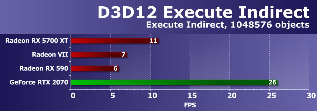 Из более-менее новых бенчмарков мы начали использовать несколько примеров, входящих в DirectX SDK и пакет SDK компании AMD (скомпилированные примеры применения D3D11 и D3D12), а также несколько тестов для измерения производительности трассировки лучей. В качестве полусинтетического теста у нас также используется и популярный 3DMark Time Spy, помогающий определить прирост от асинхронных вычислений.