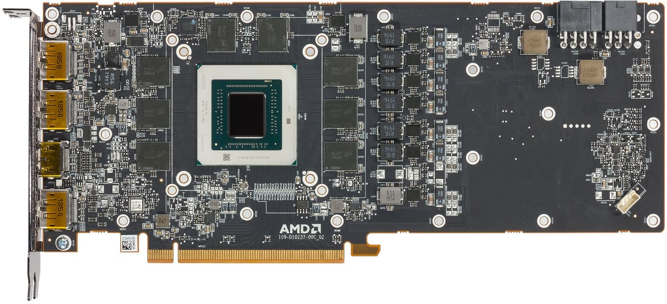 Неудивительно, что для решений этого ценового диапазона в AMD решили отказаться от хорошей, но весьма дорогой HBM2-памяти. Тем более, что получила широкое распространение быстрая GDDR6-память, ставшая логичным выбором для нового GPU. Да и объем видеопамяти в 8 ГБ кажется единственно правильным вариантом для этого ценового диапазона. 4 ГБ — уже слишком мало, а 16 ГБ — перебор, не имеющий никакого смысла для игровых решений.