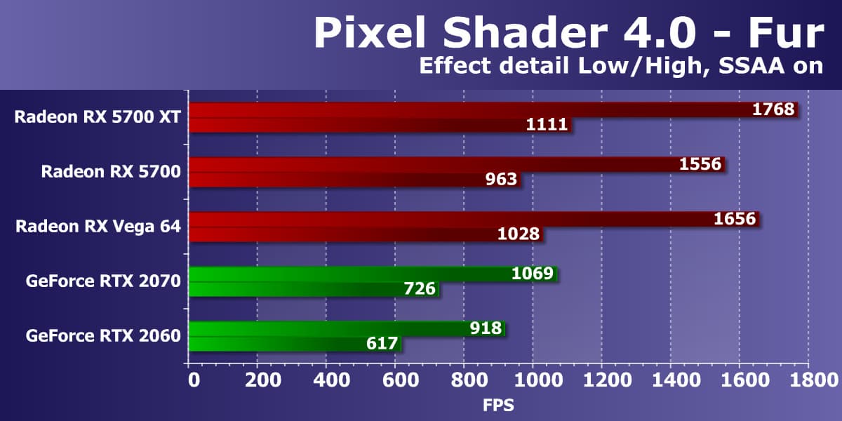 Мы успели провести предварительное тестирование Radeon RX 5700 (XT) в нашем наборе синтетических тестов — к сожалению, пока что без сравнения с Nvidia GeForce RTX 2060 Super и RTX 2070 Super. Синтетический набор все еще экспериментальный и продолжает изменяться. Мы бы хотели добавить еще больше примеров с вычислениями (compute shaders), но с этим есть определенные сложности. В будущем мы постараемся расширить и улучшить набор синтетических тестов, и если у вас есть четкие и обоснованные предложения — пишите их в комментариях к статье или отправьте авторам почтой.