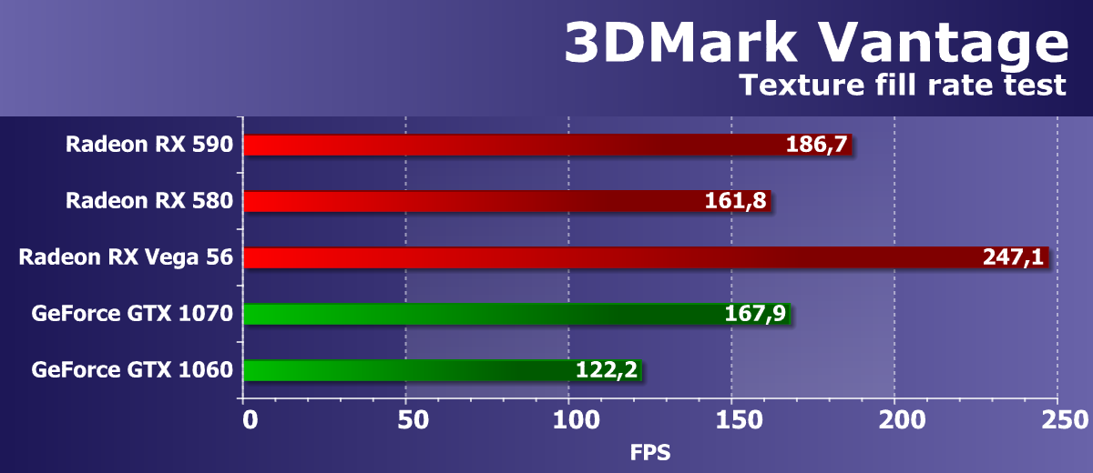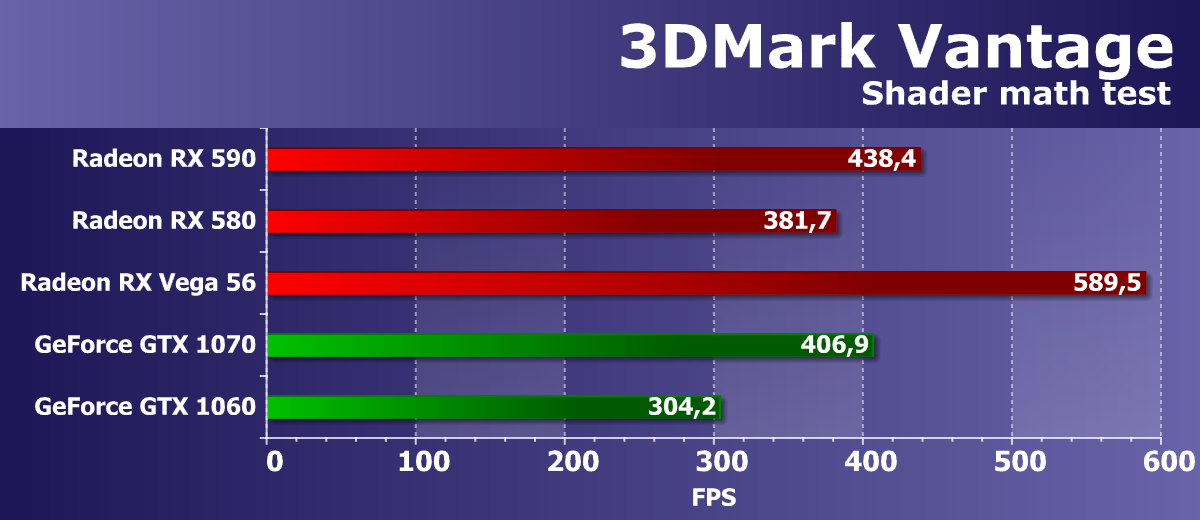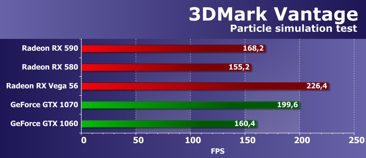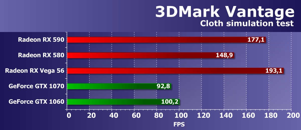 Соперниками из стана конкурирующей компании Nvidia для новинки стали две GeForce GTX, одна из которых дороже, а другая дешевле. Для сравнения мы взяли модели GTX 1070 и GTX 1060, которые хоть и не являются прямыми соперниками для RX 590, но близки к ней по цене «сверху» и «снизу» соответственно. Поэтому нам будет интересно посмотреть, насколько сильна по отношению к ним окажется новая видеокарта AMD.