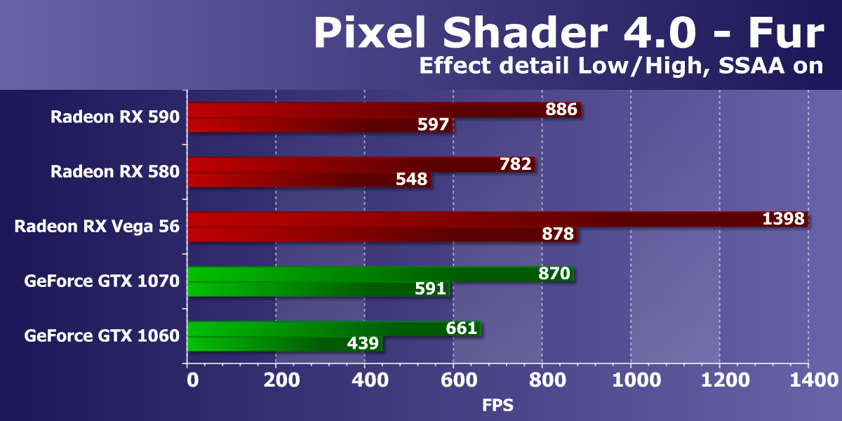 Из ранее активно использовавшихся тестов RightMark3D 2.0 мы оставили лишь несколько самых тяжелых вариантов. Остальные уже изрядно устарели и на столь мощных GPU упираются в различные ограничители, не загружают работой блоки графического процессора и не показывают истинную его производительность. А вот синтетические Feature-тесты из набора 3DMark Vantage мы пока что решили оставить в полном составе, так как заменить их попросту нечем, хотя и они уже устарели.