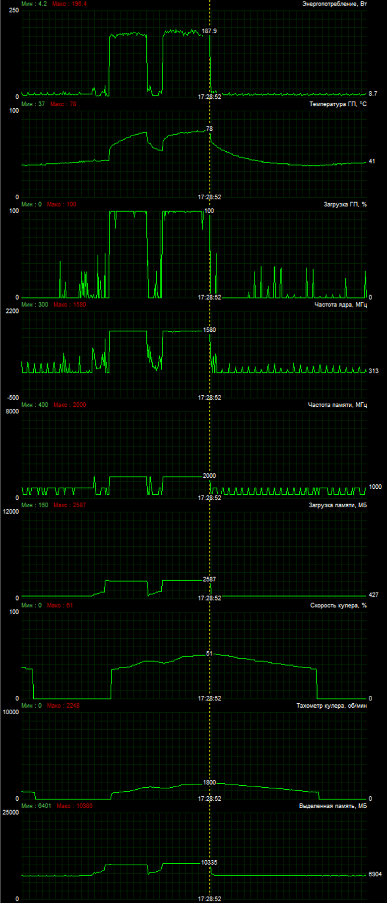 После 6-часового прогона под нагрузкой максимальная температура ядра не превысила 78 градусов, что является приемлемым результатом для видеокарты уровня чуть выше среднего, но, может быть, все-таки многовато.
