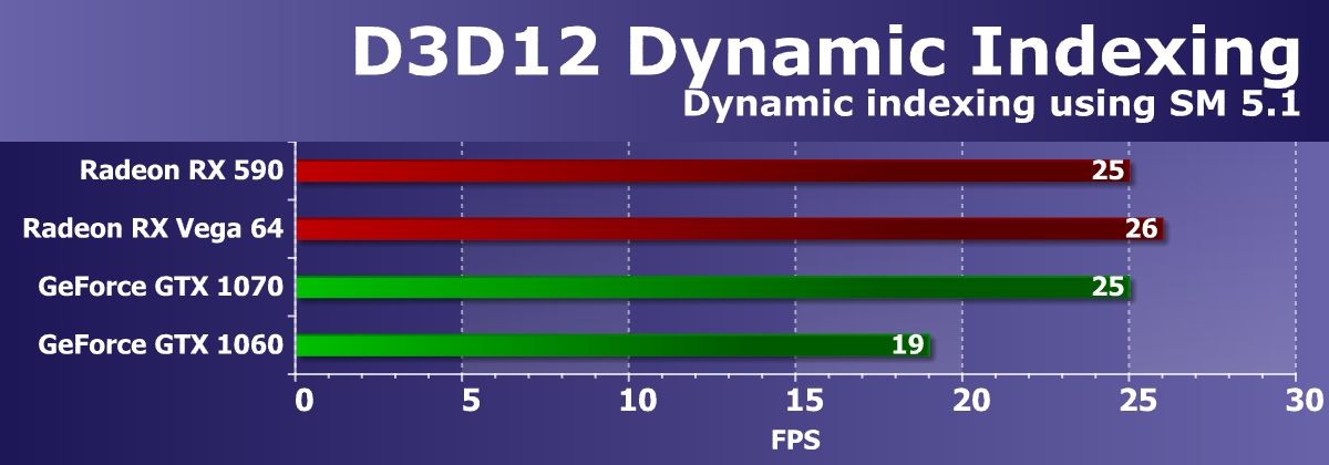 Из более-менее новых бенчмарков мы начали использовать несколько примеров, входящих в DirectX SDK и пакет SDK компании AMD (скомпилированные примеры применения D3D11 и D3D12), а также несколько тестов для измерения производительности трассировки лучей (в случае наличия поддержки DXR API). В качестве полусинтетического теста у нас также используется популярный 3DMark Time Spy, помогающий определить пользу от асинхронных вычислений.