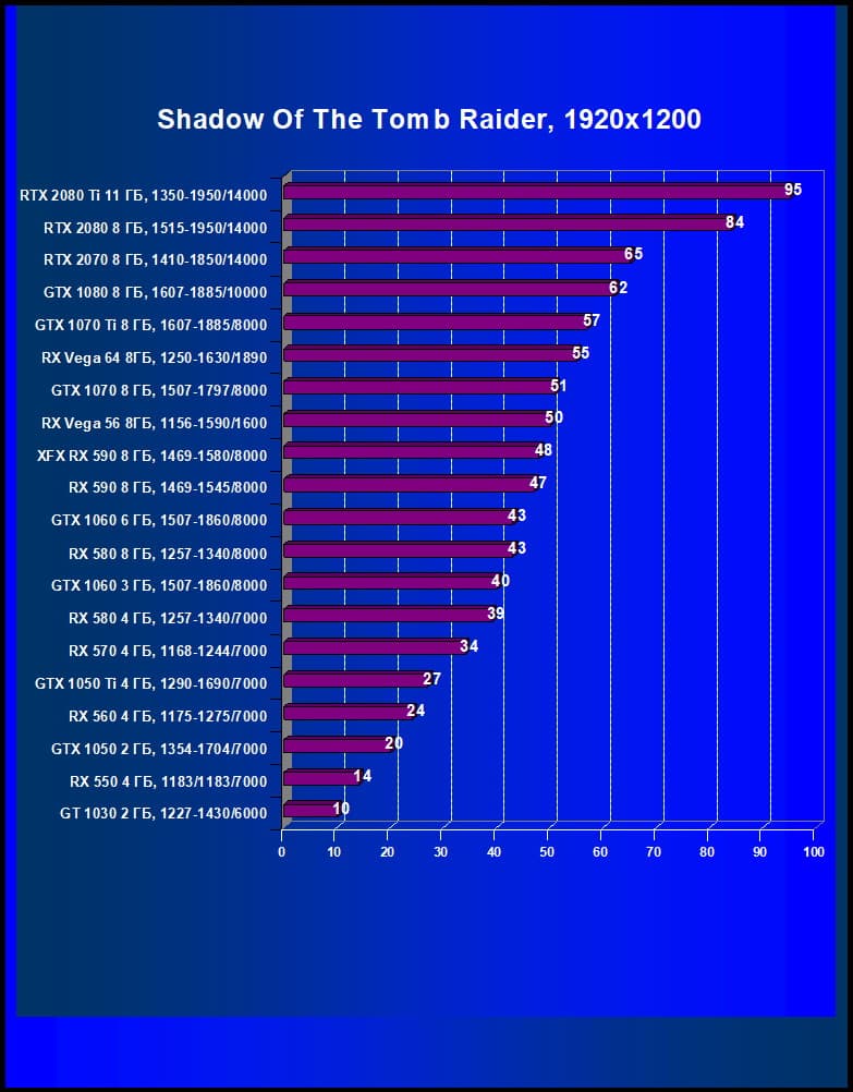 | 04 | XFX RX 590 8 ГБ, 1469—1580/8000 | 424 | 890 | 21 000 |