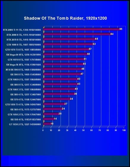 RX 590 выпускался с целью немного поднять планку производительности среднего сегмента ускорителей, ранее поддерживаемую со стороны AMD ускорителем RX 580, поэтому резкого прироста скорости мы не ожидали. Действительно, в среднем получился прирост на 10%-11% относительно RX 580. И поскольку последний значительно превосходил конкурента в лице GeForce GTX 1060, теперь уже RX 590 закрепил за Radeon лидерство в ценовом сегменте около 20 000 рублей.