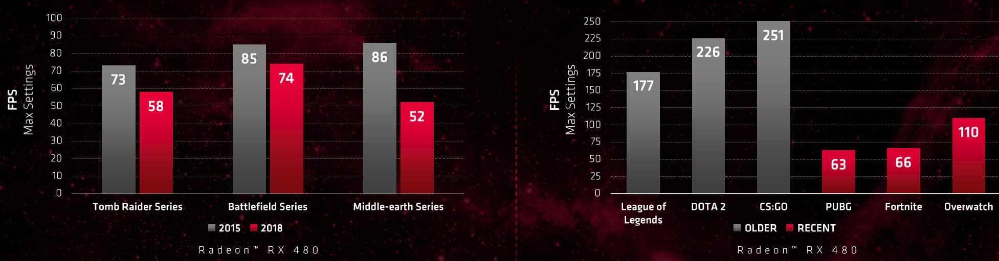 Вместе с этим, современные игровые проекты становятся все более требовательными, и если еще несколько лет назад скорости рендеринга при использовании старой доброй Radeon RX 480 при максимальных настройках графики в разрешении 1080p было более чем достаточно, то новые игры устанавливают уже другие требования. Это касается даже таких многопользовательских проектов, как Fortnite и PUBG, производительности RX 480 в которых уже еле хватает для того, чтобы получить стабильные 60 FPS.