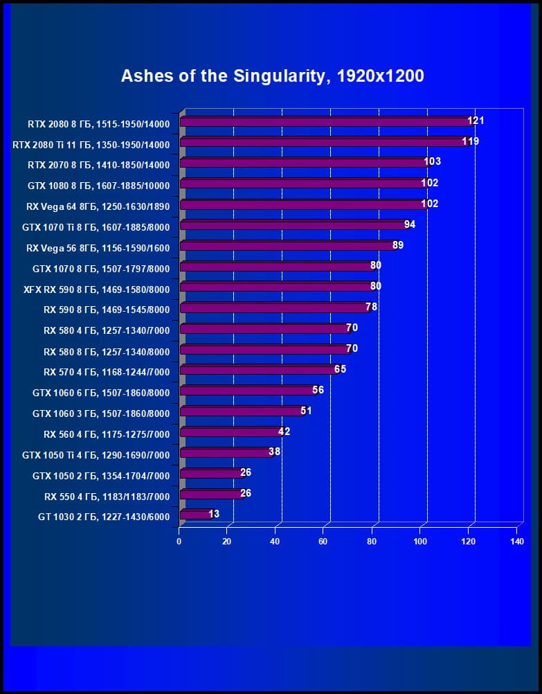 Рейтинг ускорителей iXBT.com демонстрирует нам функциональность видеокарт друг относительно друга и нормирован по самому слабому ускорителю — GeForce GT 1030 (то есть сочетание скорости и функций GT 1030 приняты за 100%). Рейтинги ведутся по 20 ежемесячно исследуемым нами акселераторам в рамках проекта Лучшая видеокарта месяца. Из общего списка выбирается группа карт для анализа, куда входят RX 590 и его конкуренты. Для расчета рейтинга полезности использованы розничные цены на конец ноября 2018 года.