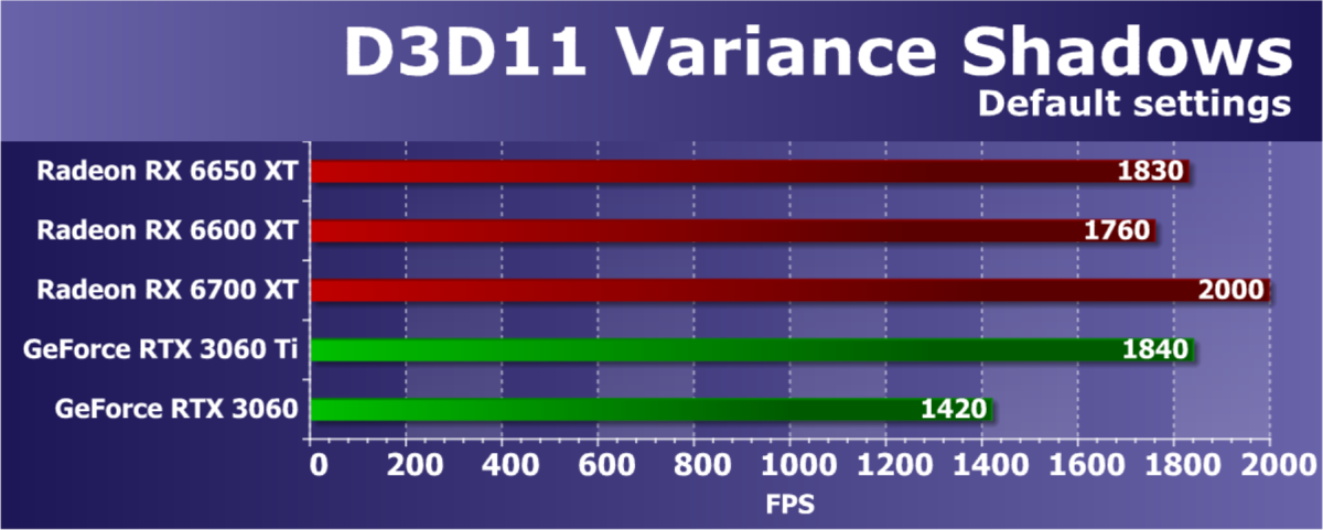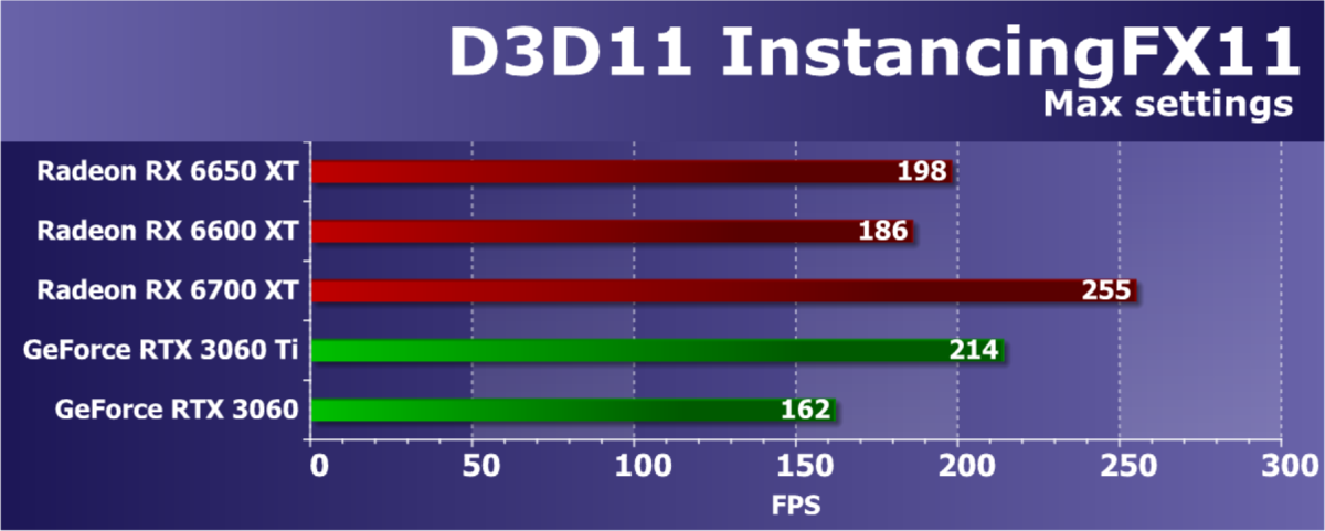 Также важно и то, что в Radeon RX 6650 XT используется более производительная GDDR6-память, работающая на эффективной частоте в 17,5 ГГц по сравнению с 16 ГГц у Radeon RX 6600 XT, что дало рост ей пропускной способности с 256 ГБ/с до 288 ГБ/с, а это будет весьма полезно в современных играх. Эти небольшие улучшения в виде повышенной частоты GPU и уровня потребления энергии, вместе с более производительной памятью дают некоторое преимущество, но вполне логично, что увеличение скорости рендеринга в играх получилось... не гигантским, скажем так.