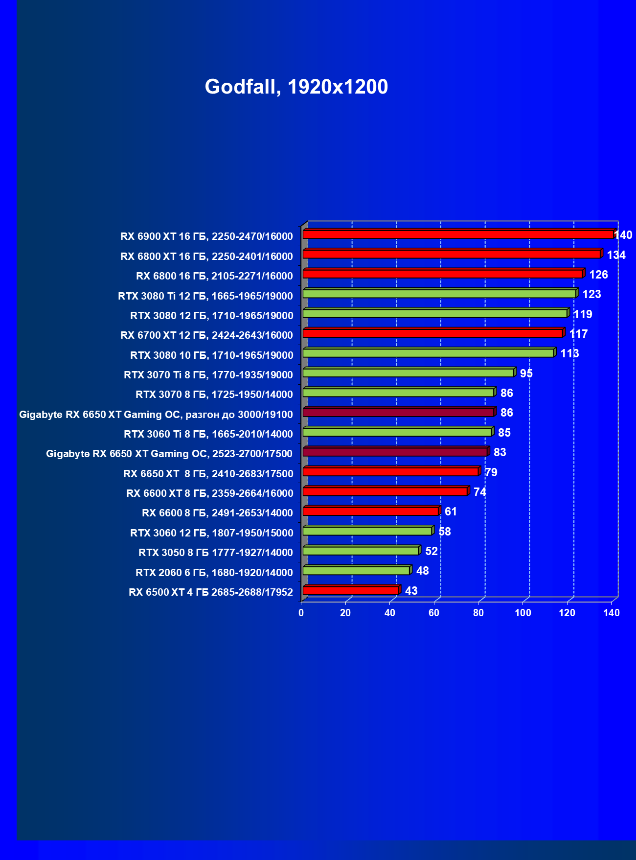 Radeon RX 6650 XT даже при чуть более высокой стоимости, чем у GeForce RTX 3060, поднялся на уровень лидера в своей группе, а карта Gigabyte с разгоном стала абсолютным лидером рейтинга!