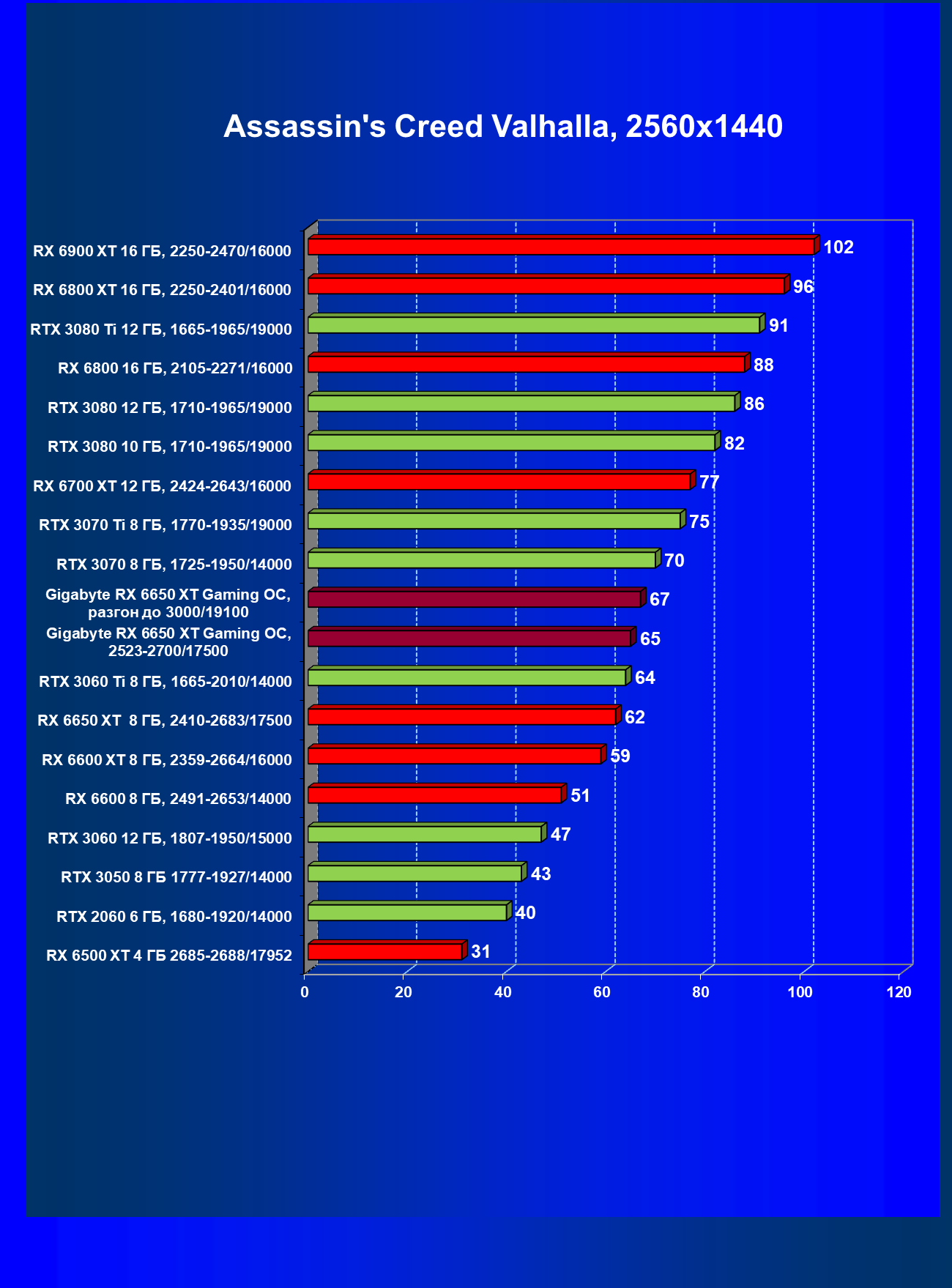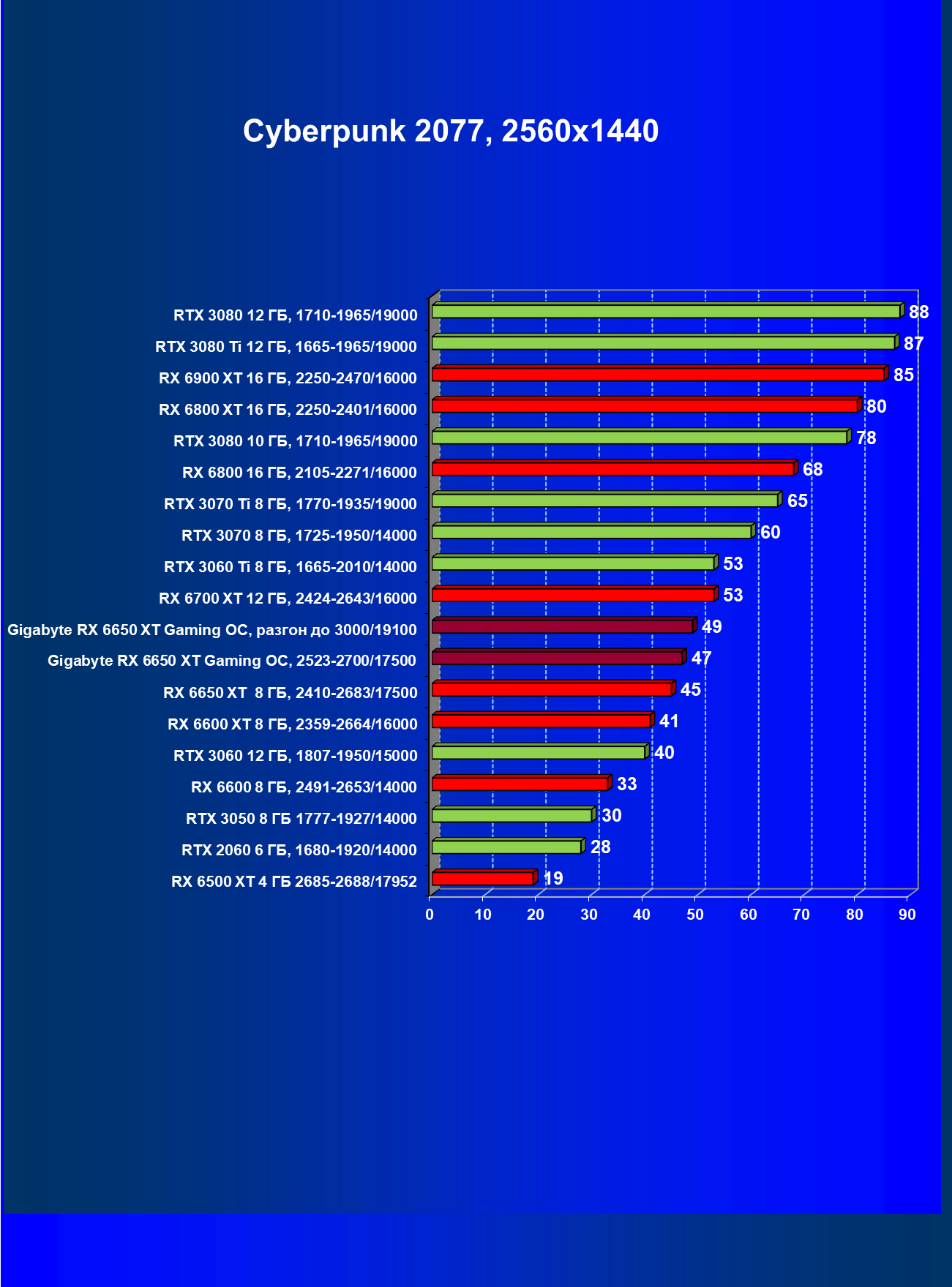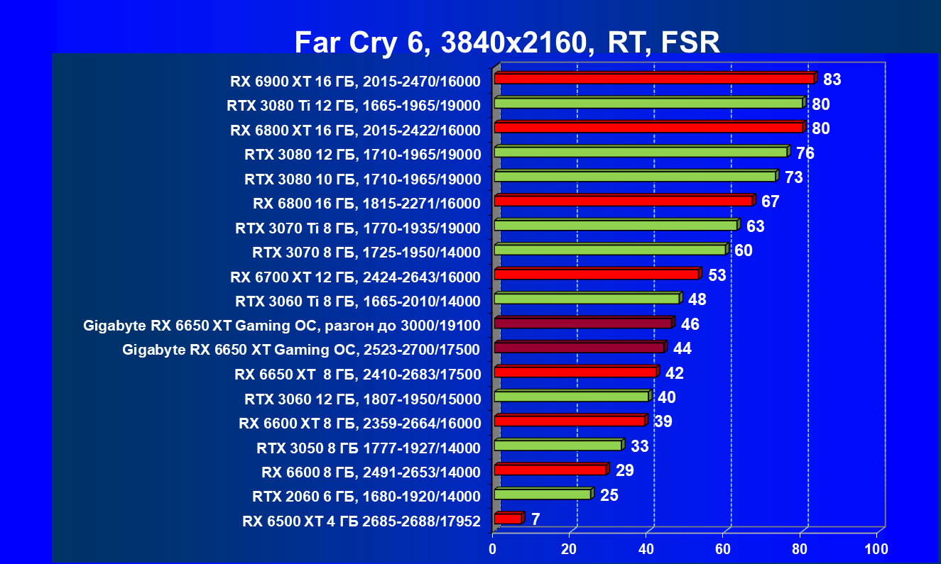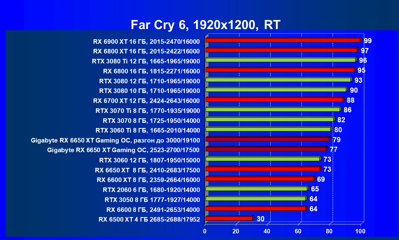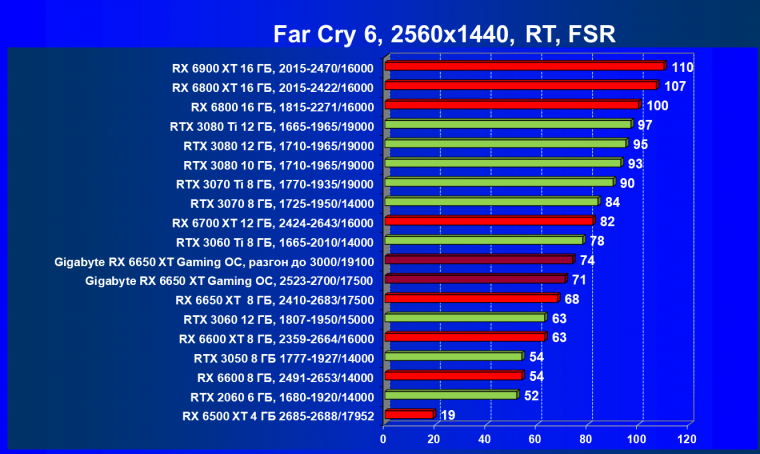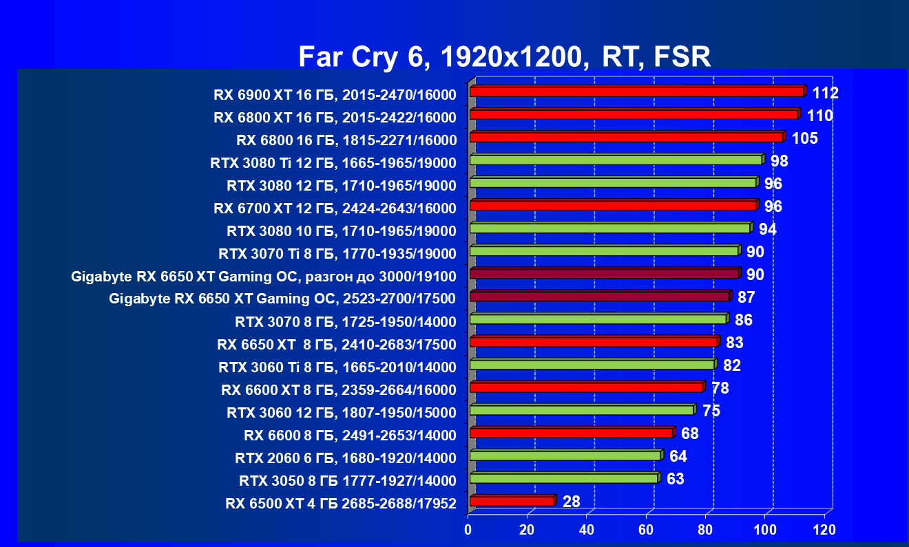 | 01 | Gigabyte RX 6650 XT Gaming OC, разгон до 3000/19100 | 73 | 370 | 51 000 |