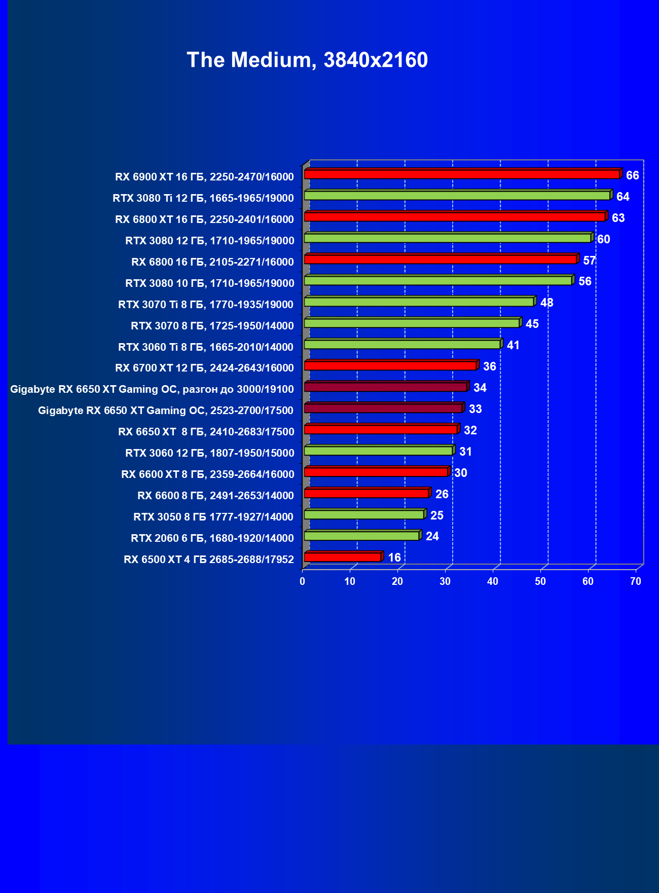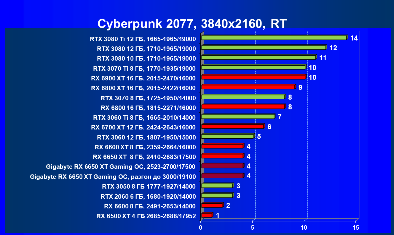 | 11 | Gigabyte RX 6650 XT Gaming OC, разгон до 3000/19100 | 250 | 49 | 51 000 |