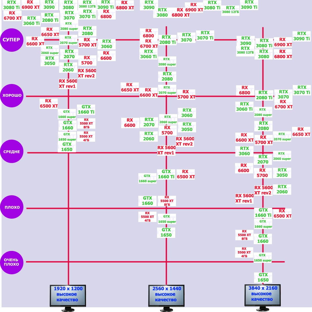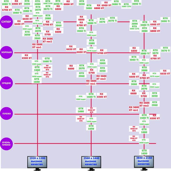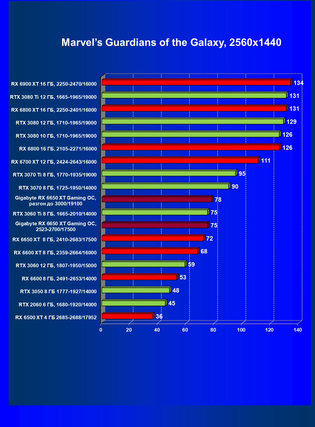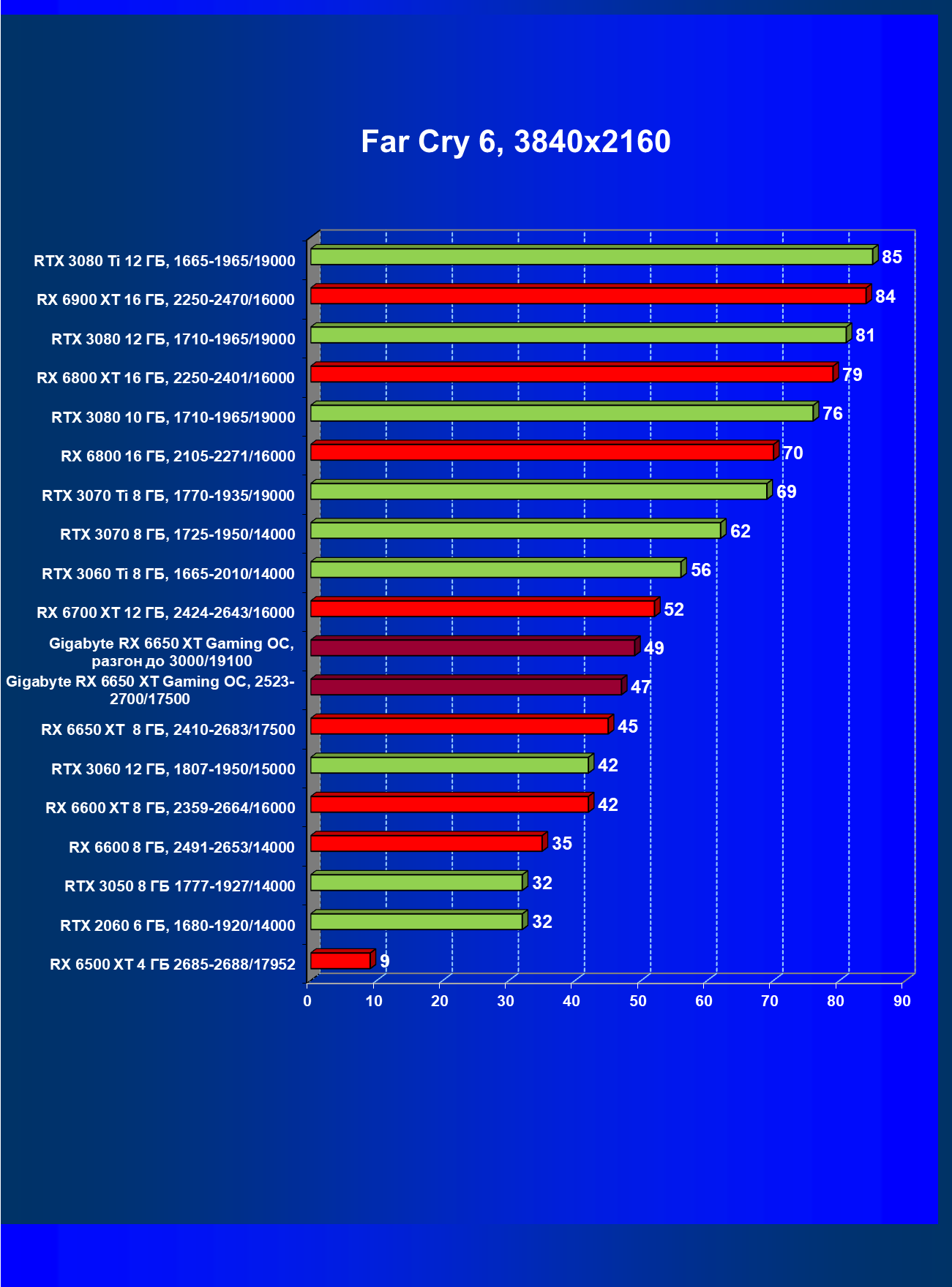 | 14 | RX 6600 XT 8 ГБ, 2359—2664/16000 | 220 | 45 | 49 000 |