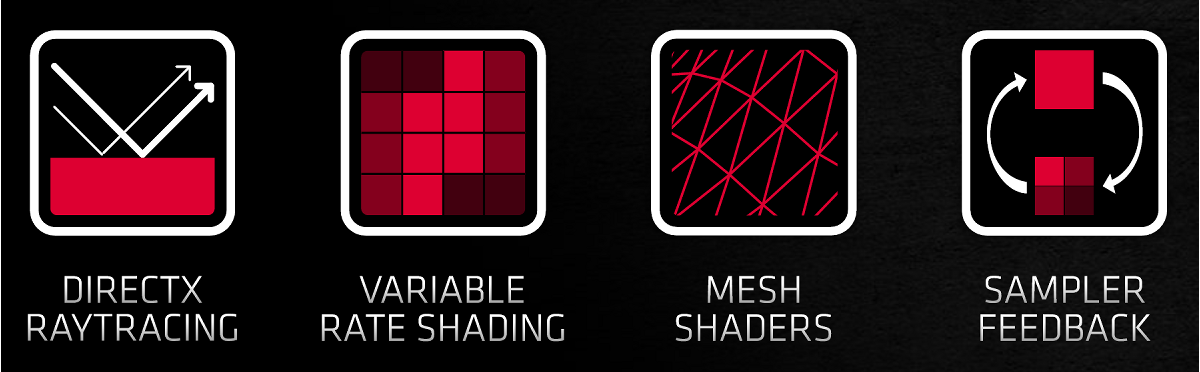 В обзоре Radeon RX 6800 XT мы упоминали о полной поддержке новыми решениями DirectX 12 Ultimate — нового стандарта качественной графики, включающего аппаратную трассировку лучей при помощи DirectX Raytracing, увеличение производительности при помощи переменной частоты затенения Variable Rate Shading, более эффективную поддержку стриминга текстур при помощи Sampler Feedback, а также возможность создания более детализированных игровых миров с новым геометрическим конвейером Mesh Shaders.