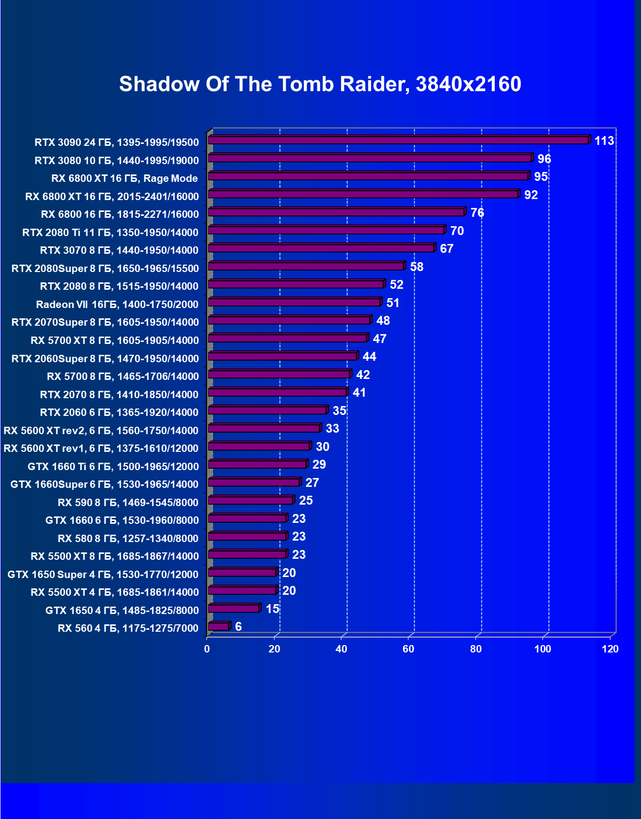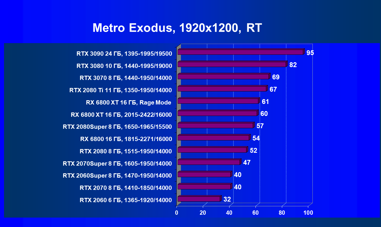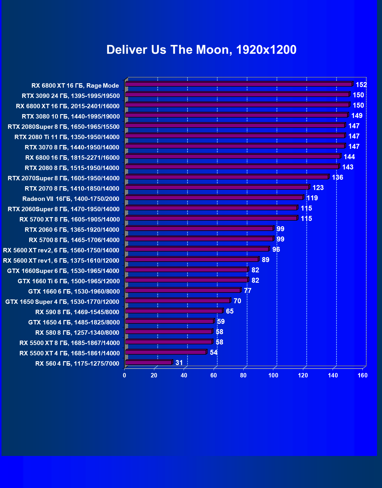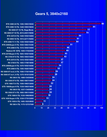| 13 | RX 6800 16 ГБ, 1815—2271/16000 | 31 | 191 | 62 000 |