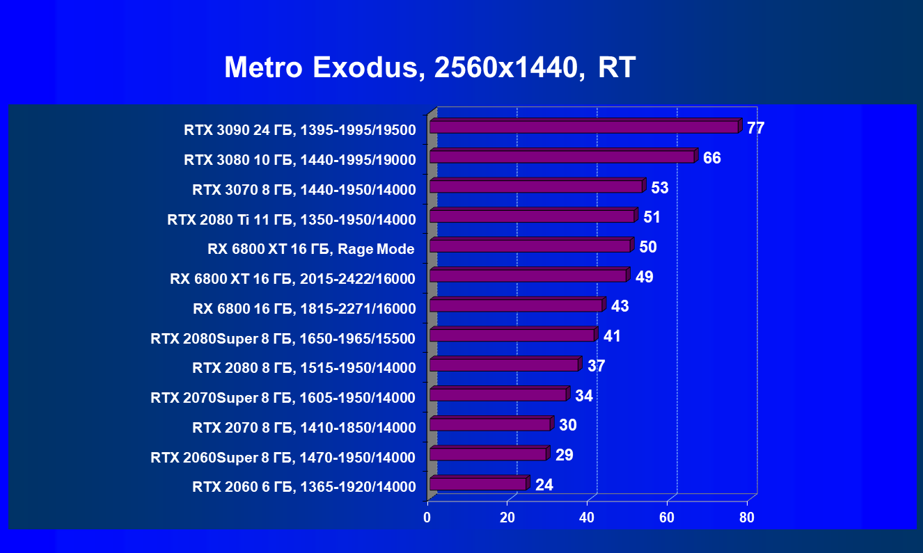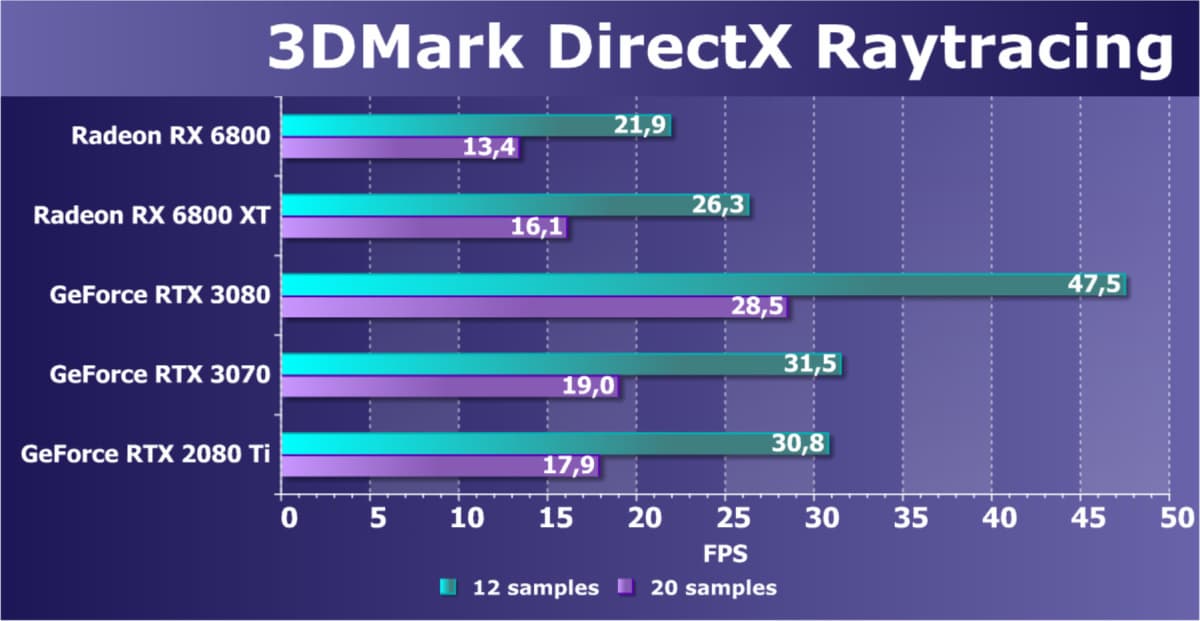 Если взять чистую производительность в играх без использования трассировки лучей и иных «умных» проприетарных технологий, то новый Radeon RX 6800 является лидером в своей группе, он чуть-чуть опережает своего главного конкурента GeForce RTX 3070.