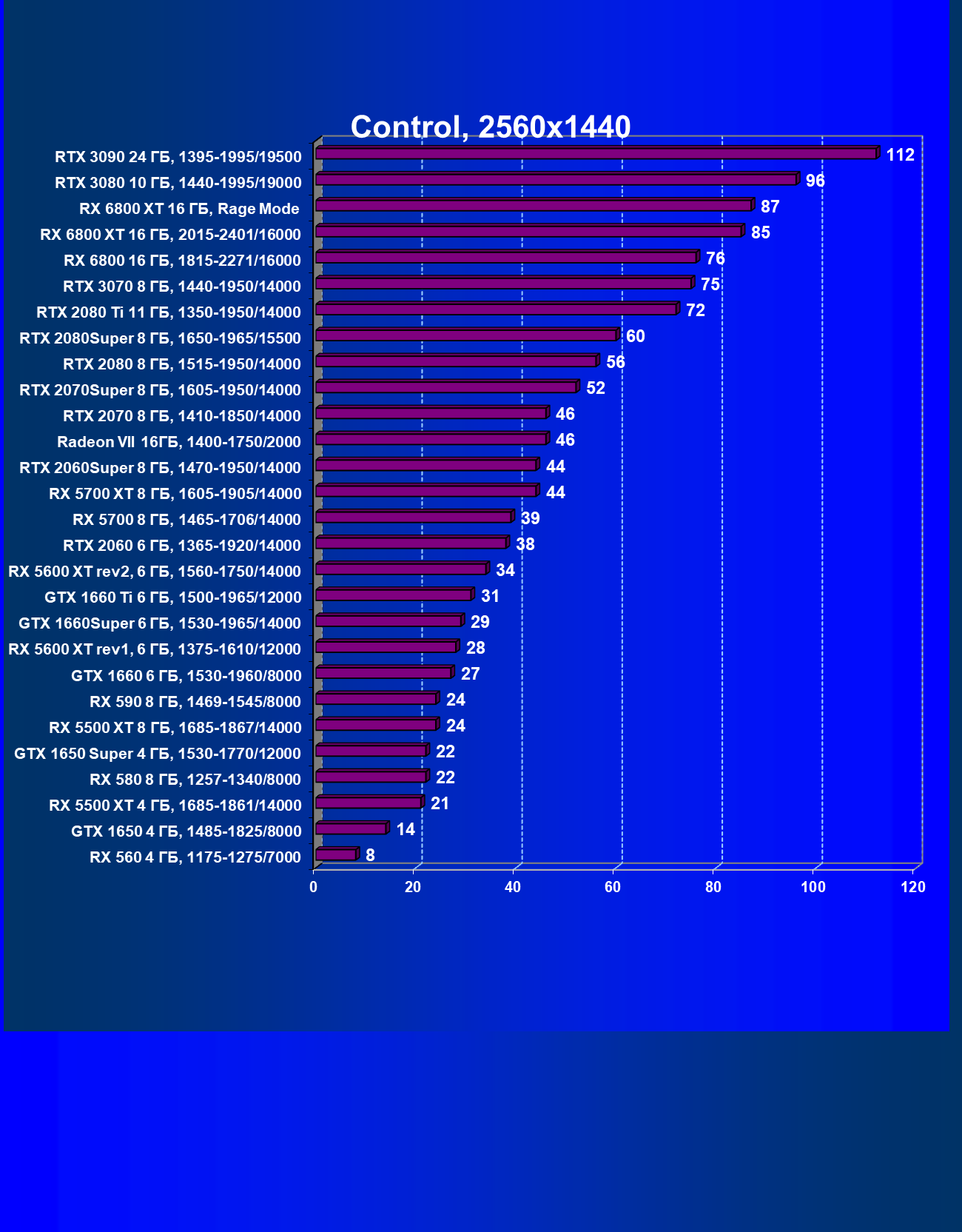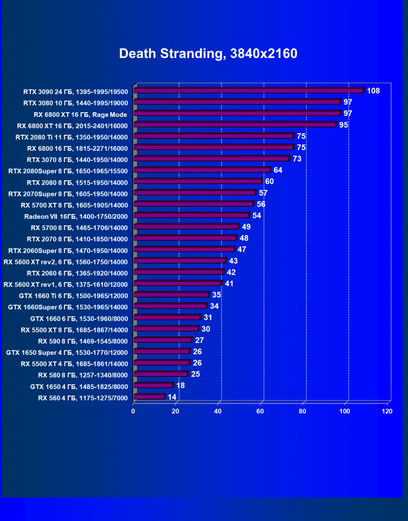 Условным соперником для нового Radeon у компании Nvidia является GeForce RTX 3070, поэтому мы взяли ее в качестве главного конкурента. Дополнительно включили еще и более производительное решение из этого же поколения RTX 30. Также сравним новинку AMD и с GeForce RTX 2080 Ti, как с наиболее производительным графическим процессором архитектуры Turing из предыдущего поколения GeForce RTX 20.
