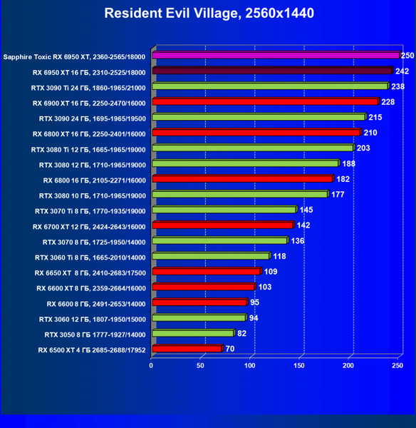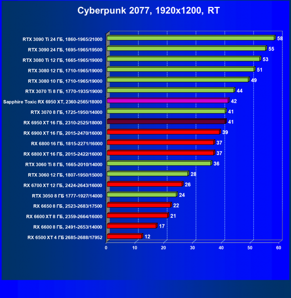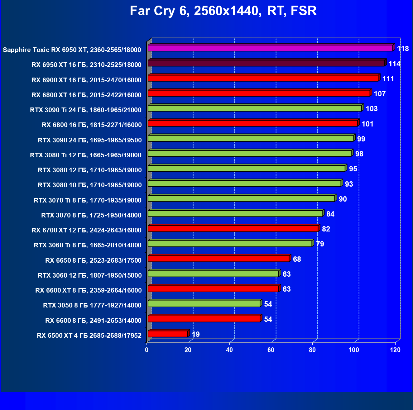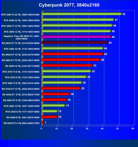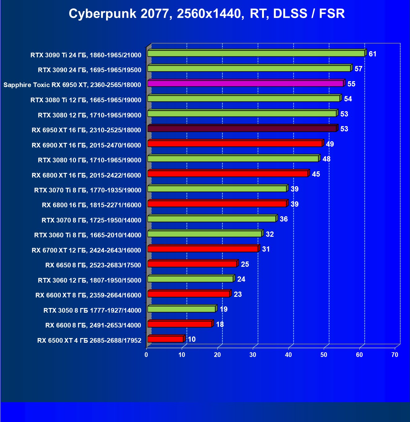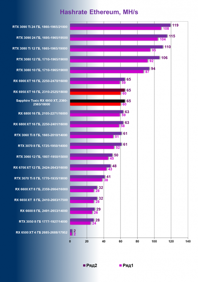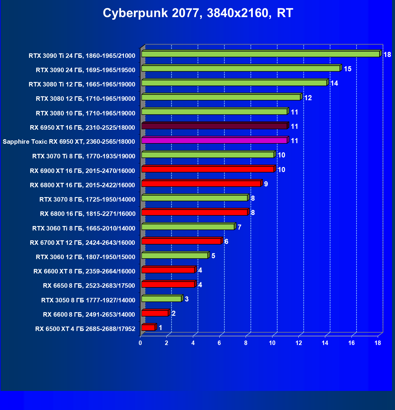 | 16 | Sapphire Toxic RX 6950 XT, 2360—2565/18000 | 61 | 696 | 114 000 |
