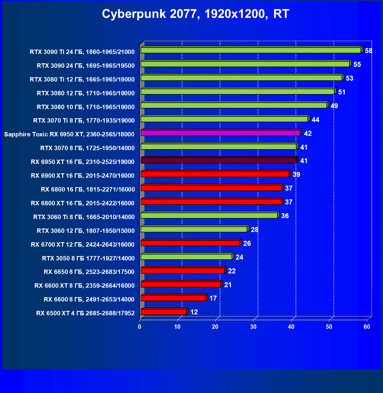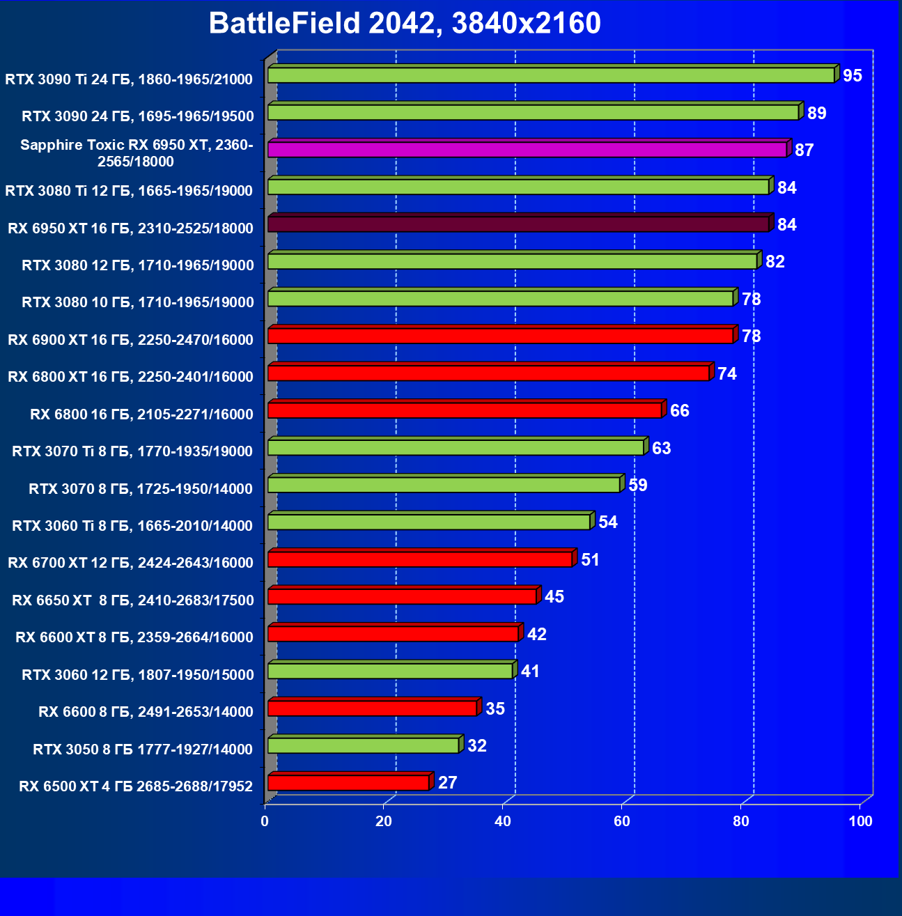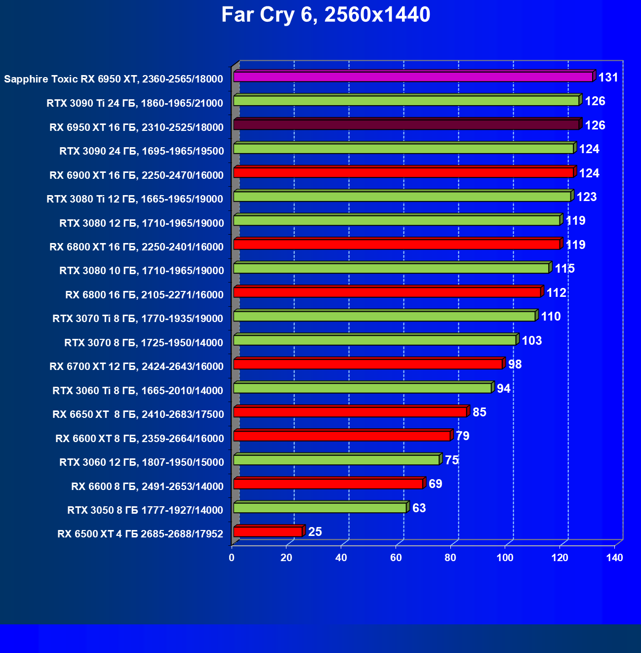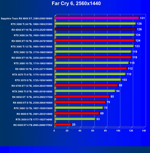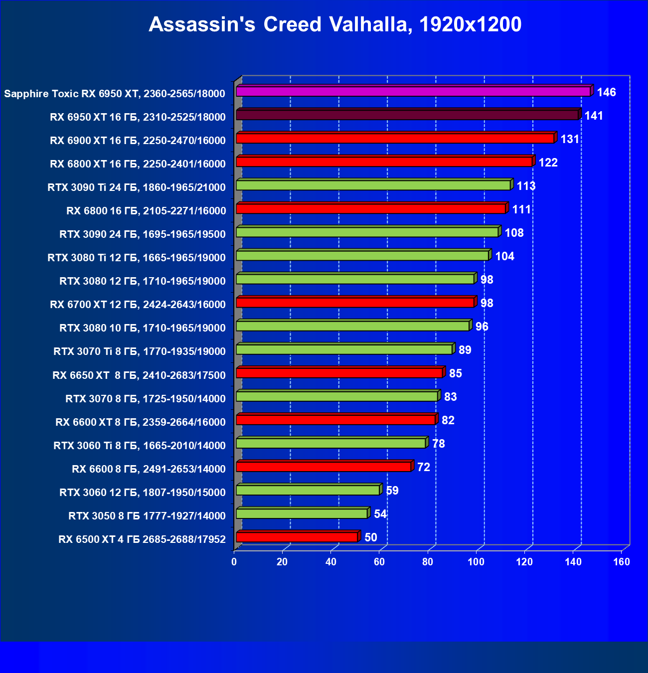 | 16 | Sapphire Toxic RX 6950 XT, 2360—2565/18000 | 61 | 696 | 114 000 |