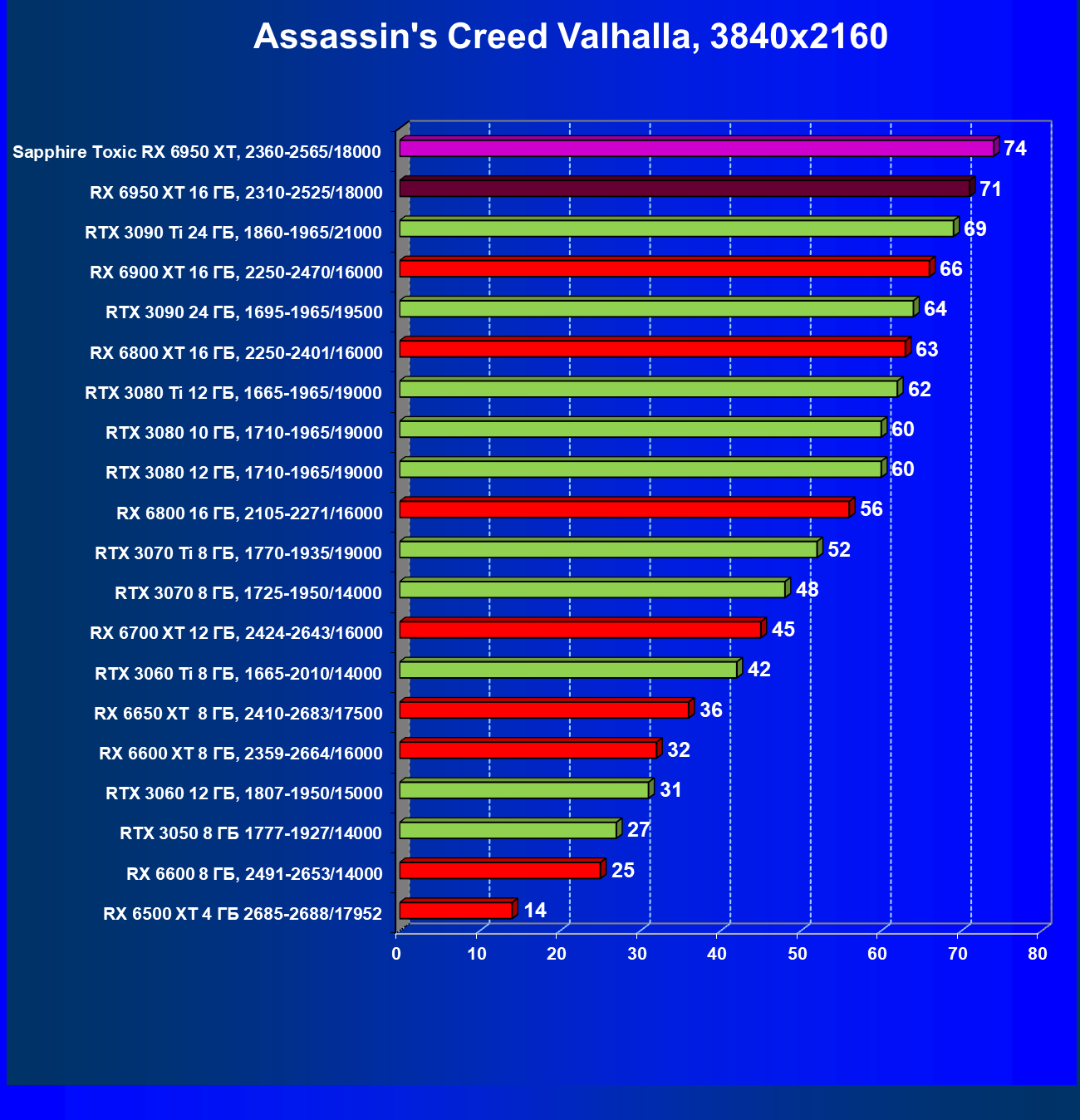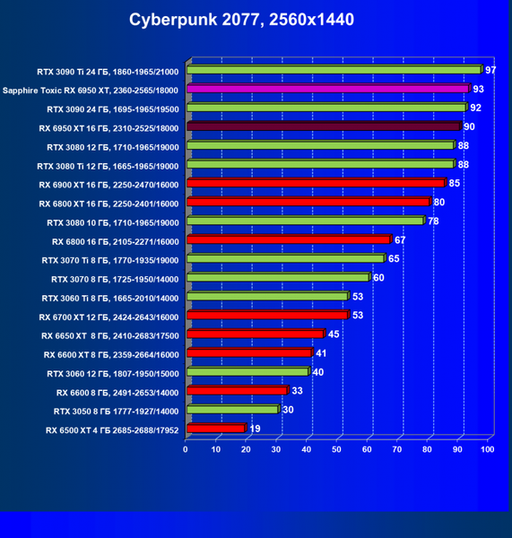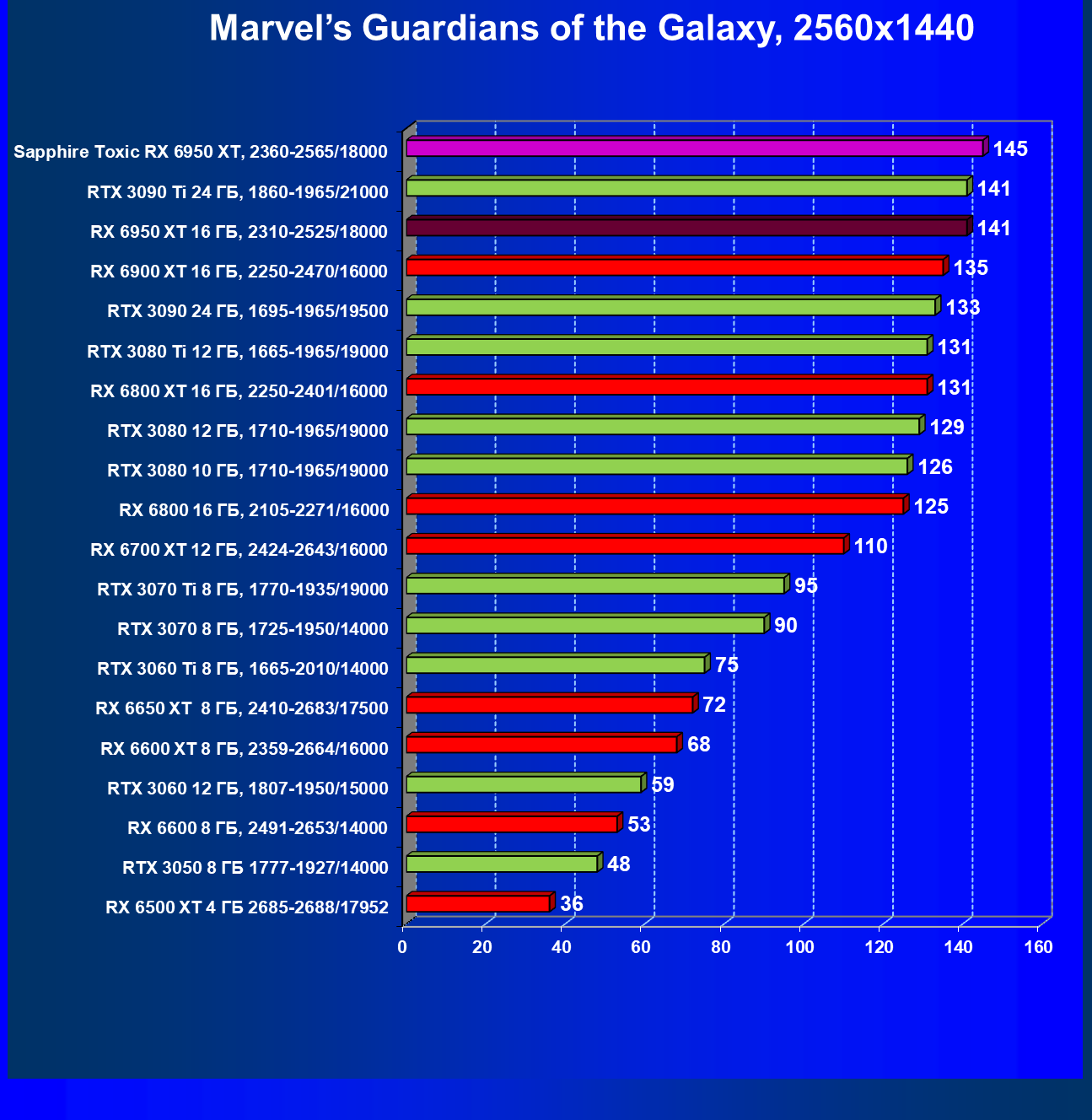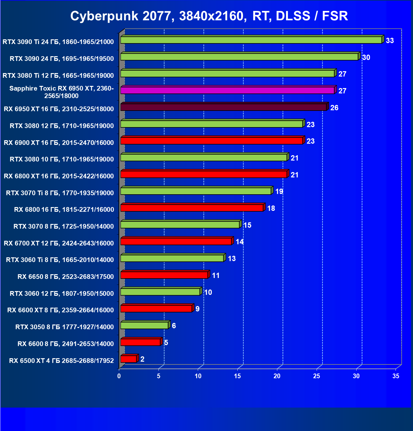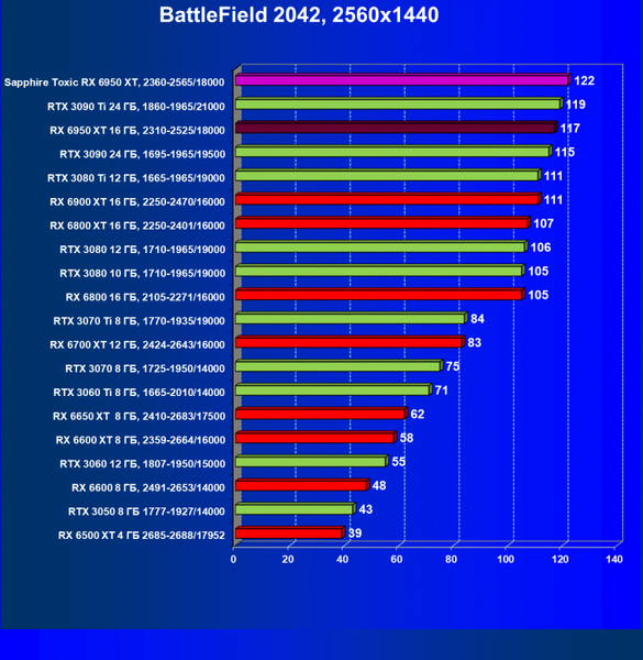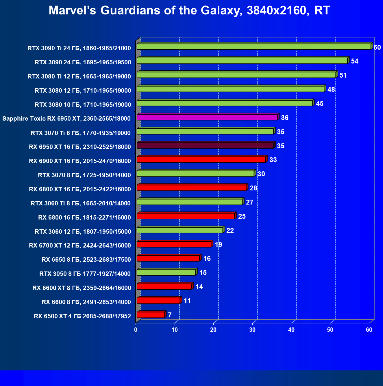 | 16 | Sapphire Toxic RX 6950 XT, 2360—2565/18000 | 61 | 696 | 114 000 |