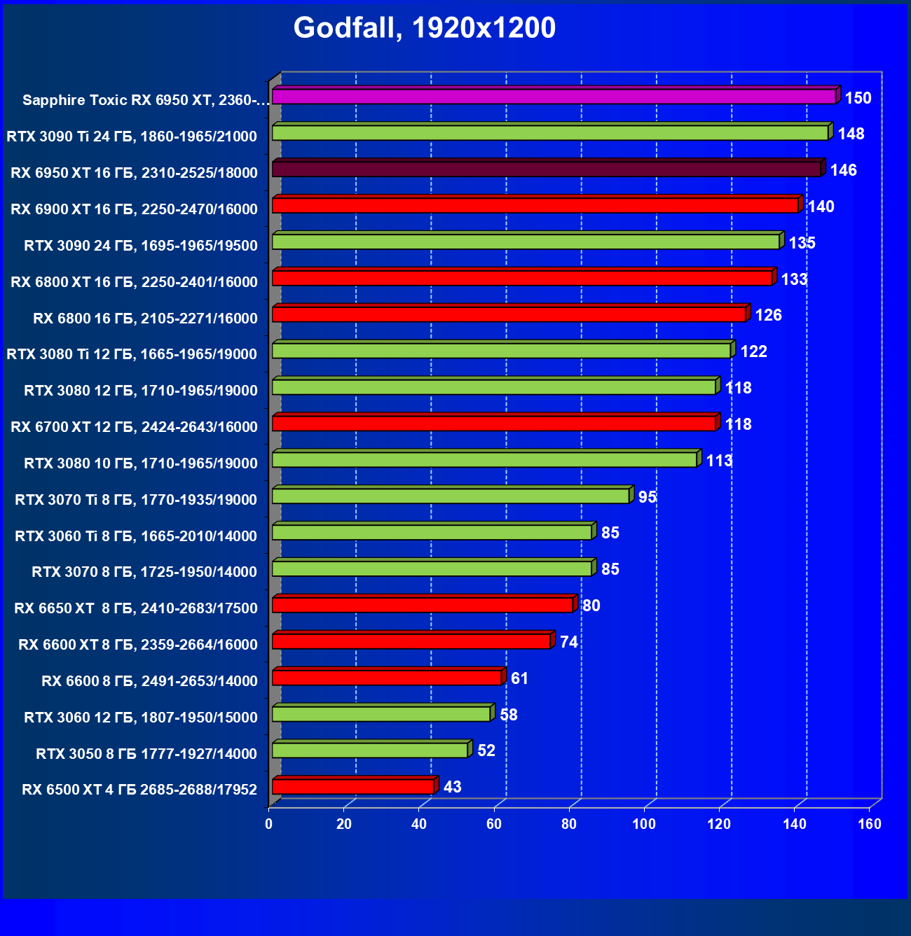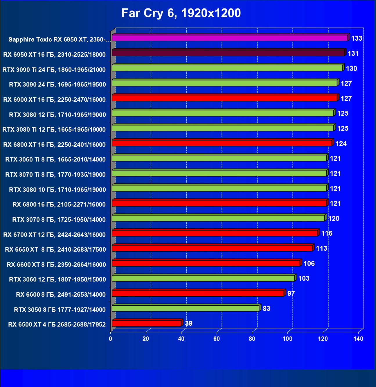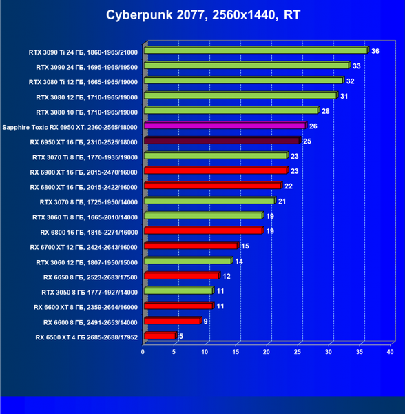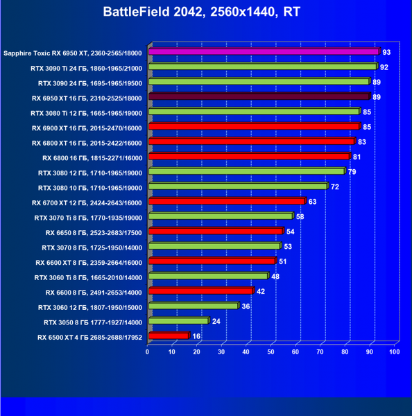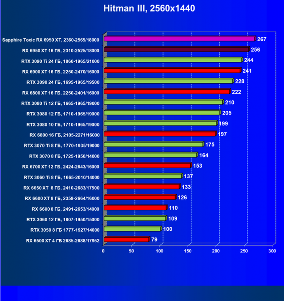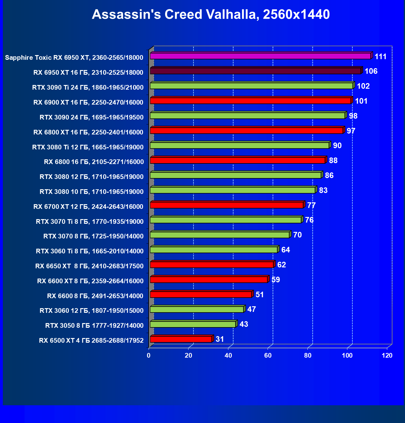 | 16 | Sapphire Toxic RX 6950 XT, 2360—2565/18000 | 61 | 696 | 114 000 |