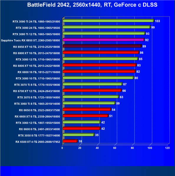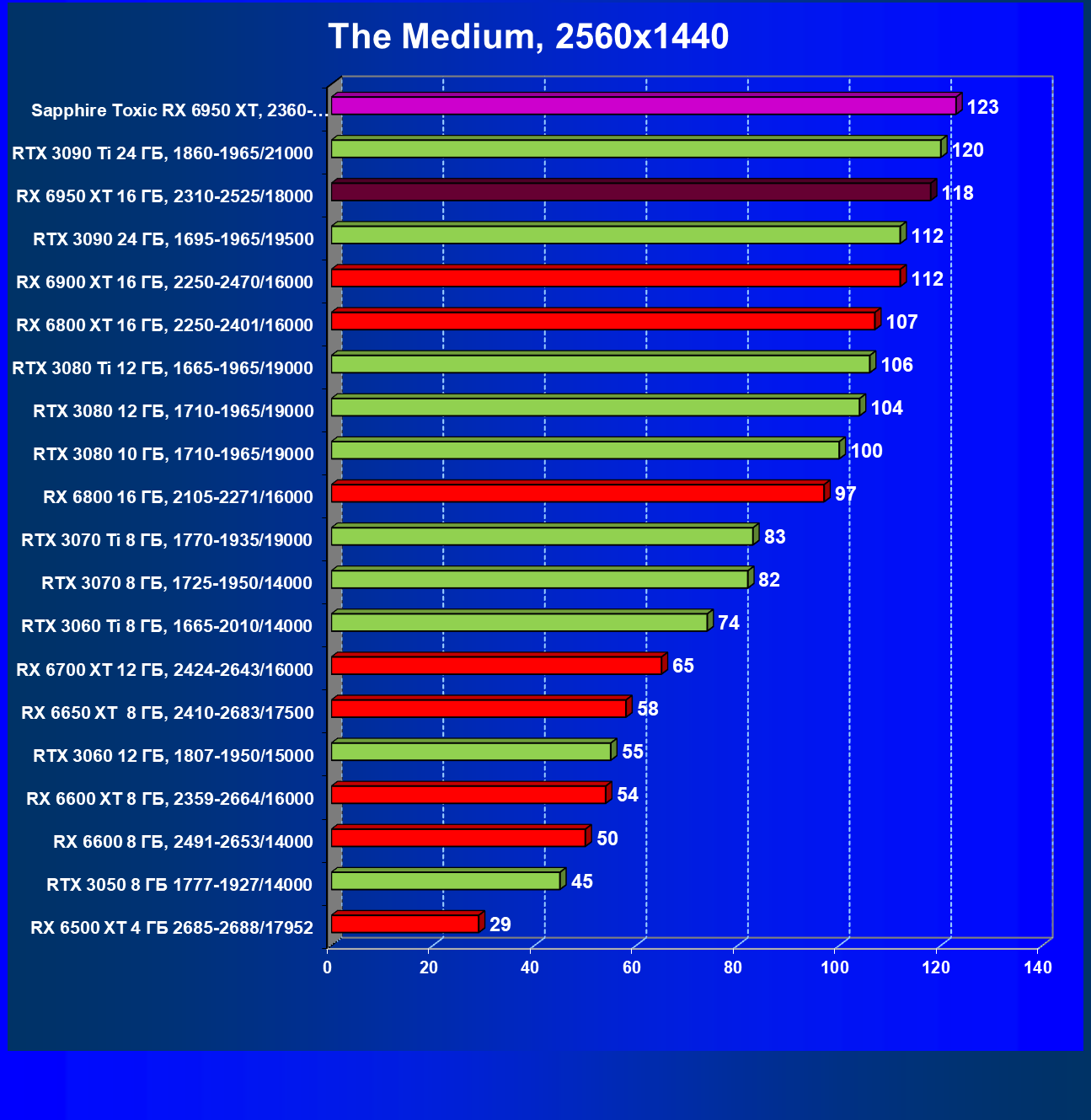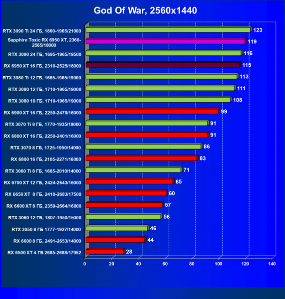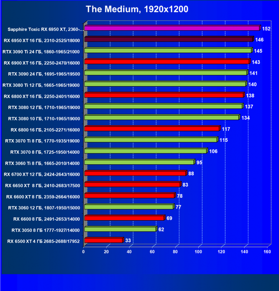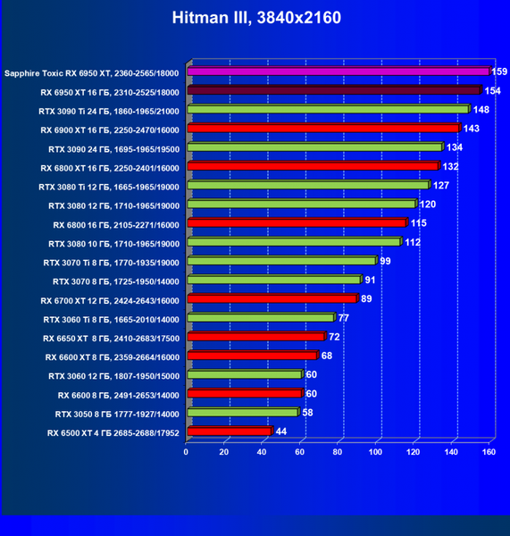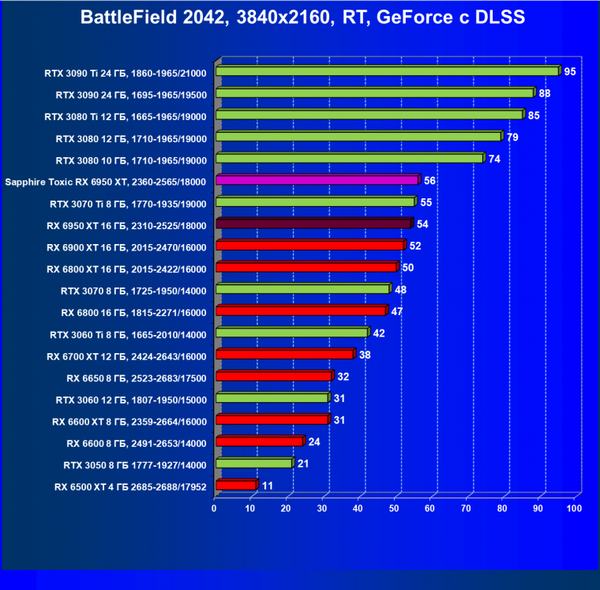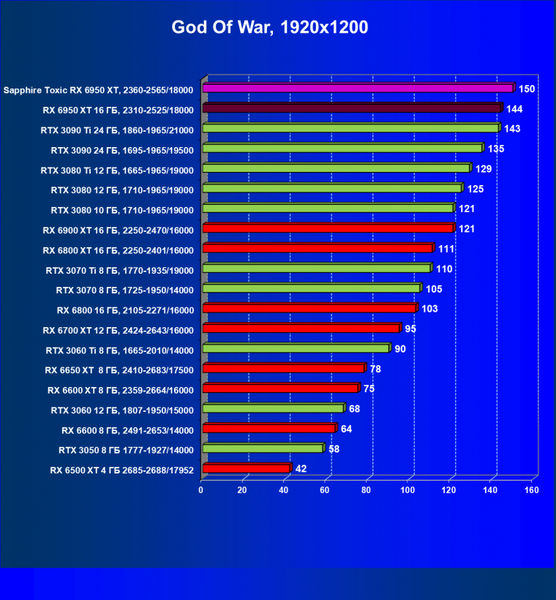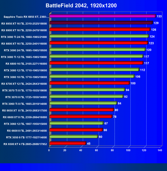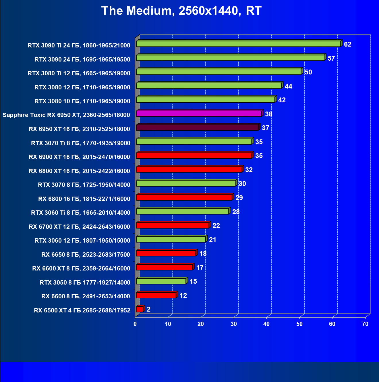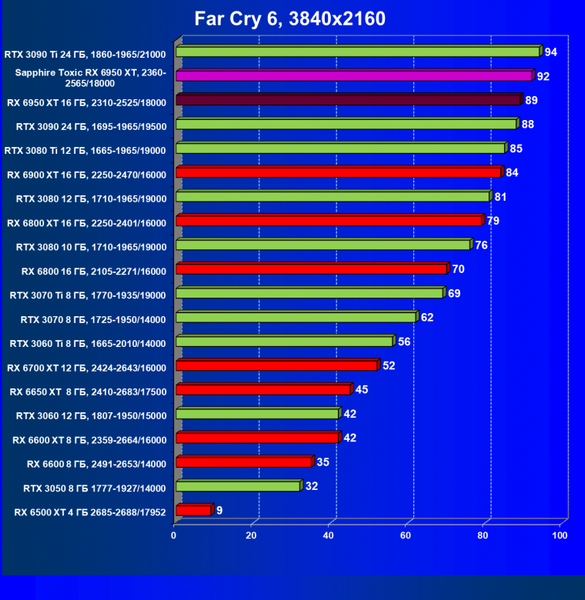 | 16 | Sapphire Toxic RX 6950 XT, 2360—2565/18000 | 61 | 696 | 114 000 |