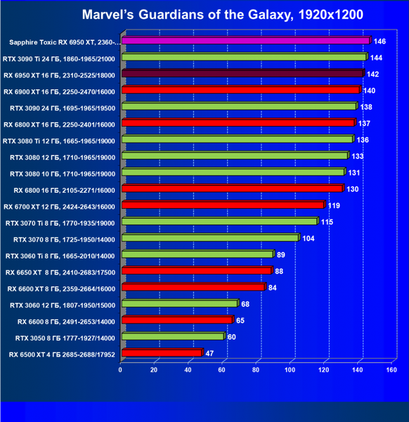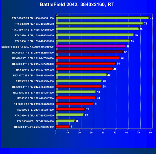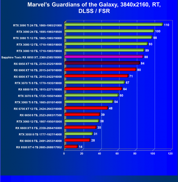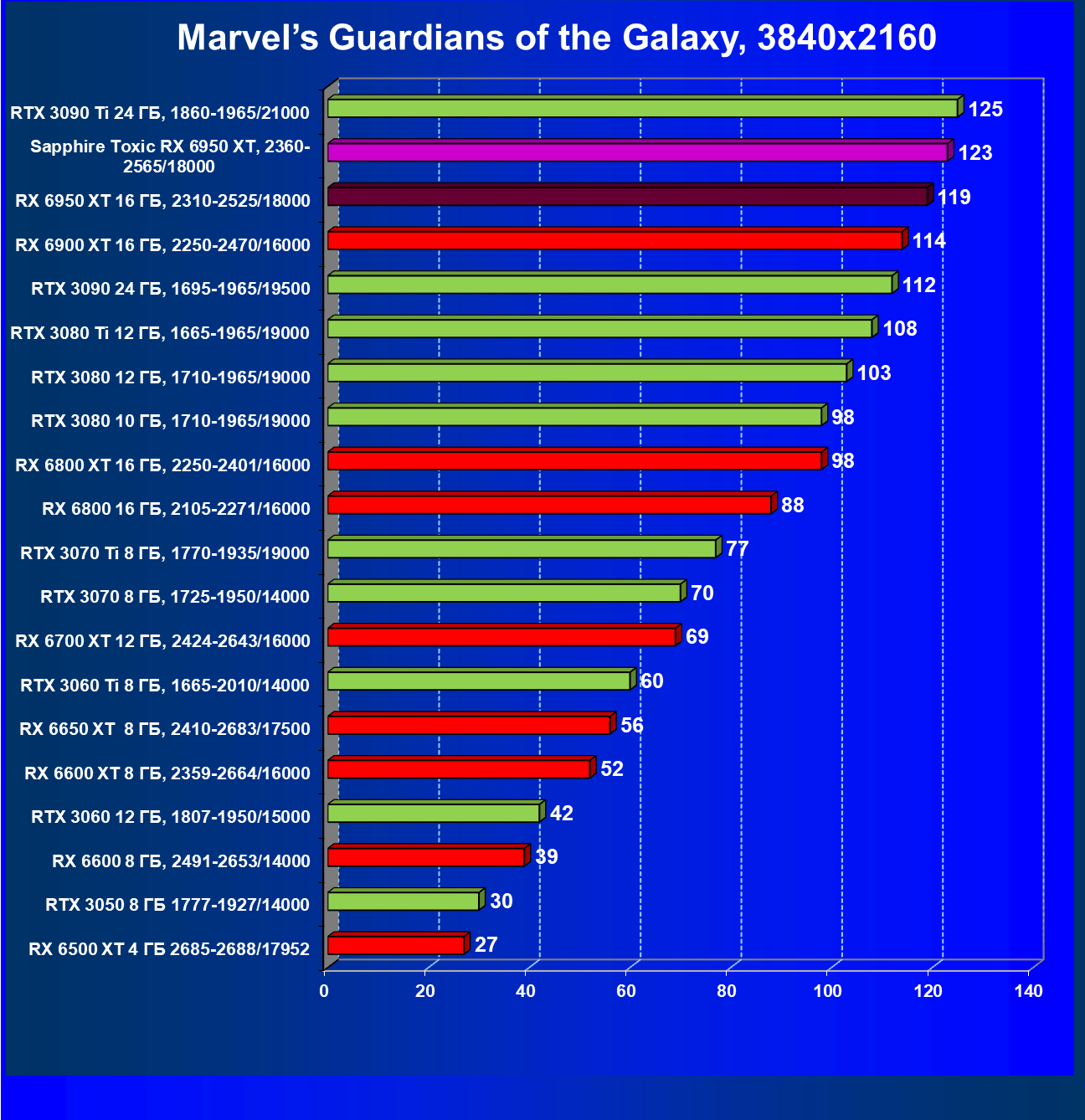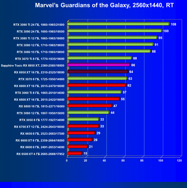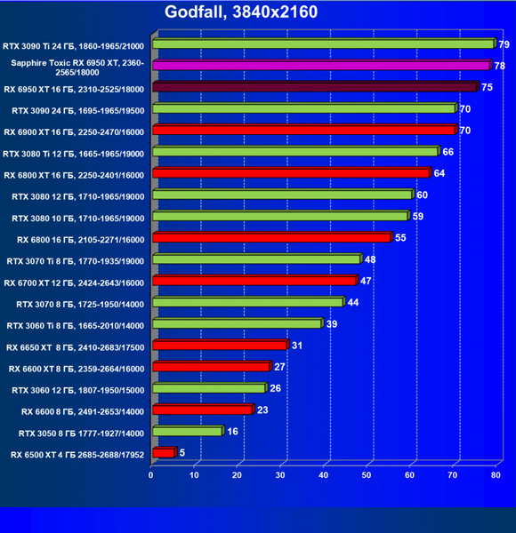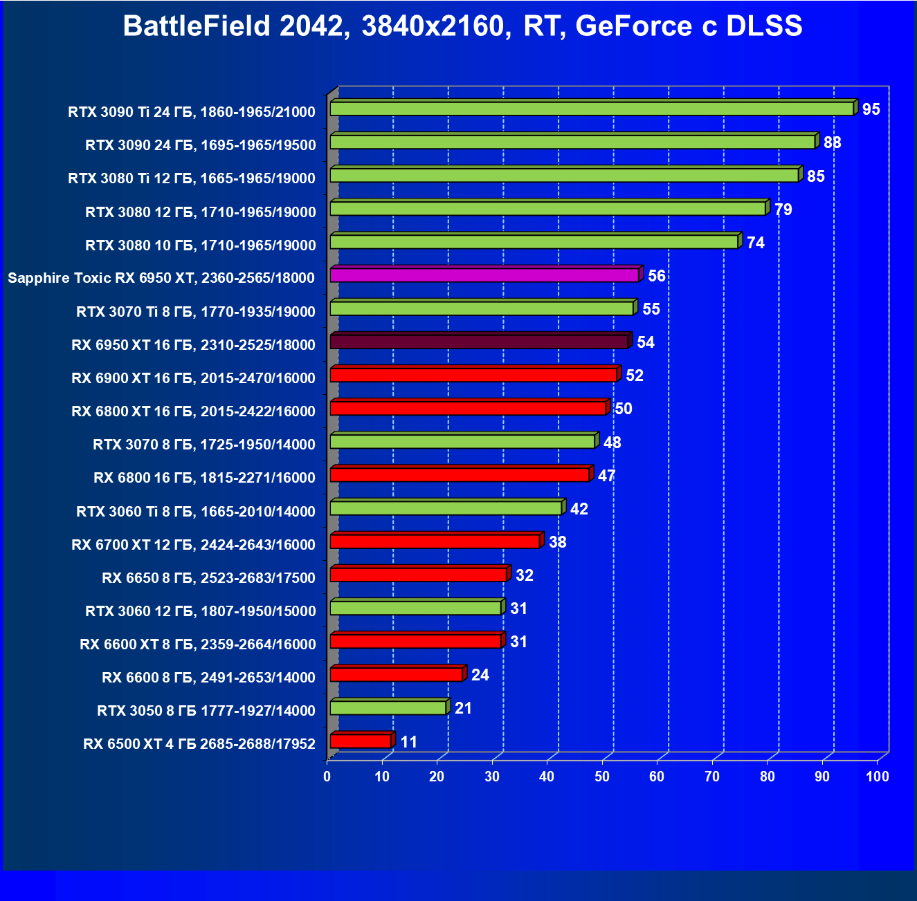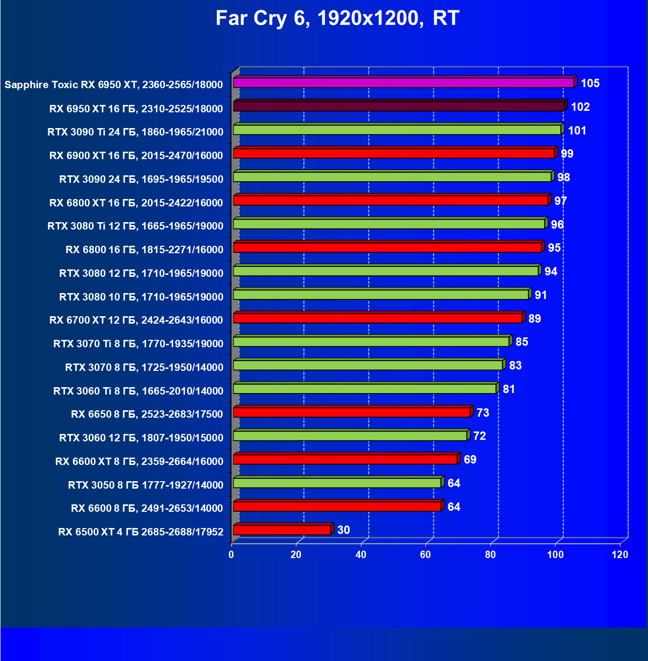 | 17 | Sapphire Toxic RX 6950 XT, 2360—2565/18000 | 79 | 904 | 114 000 |