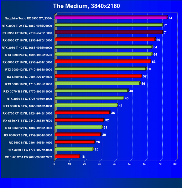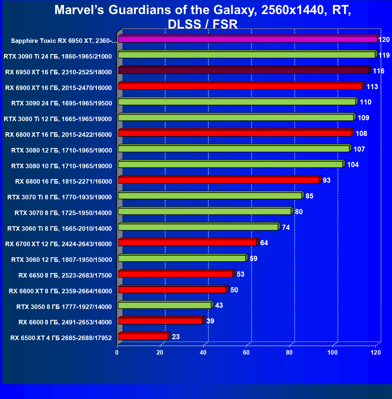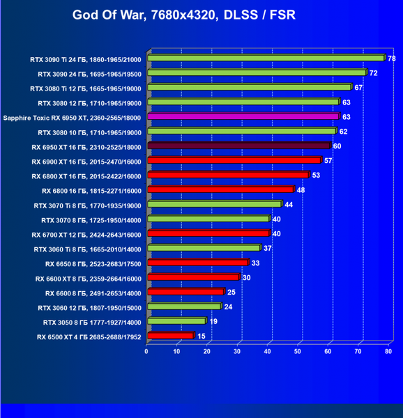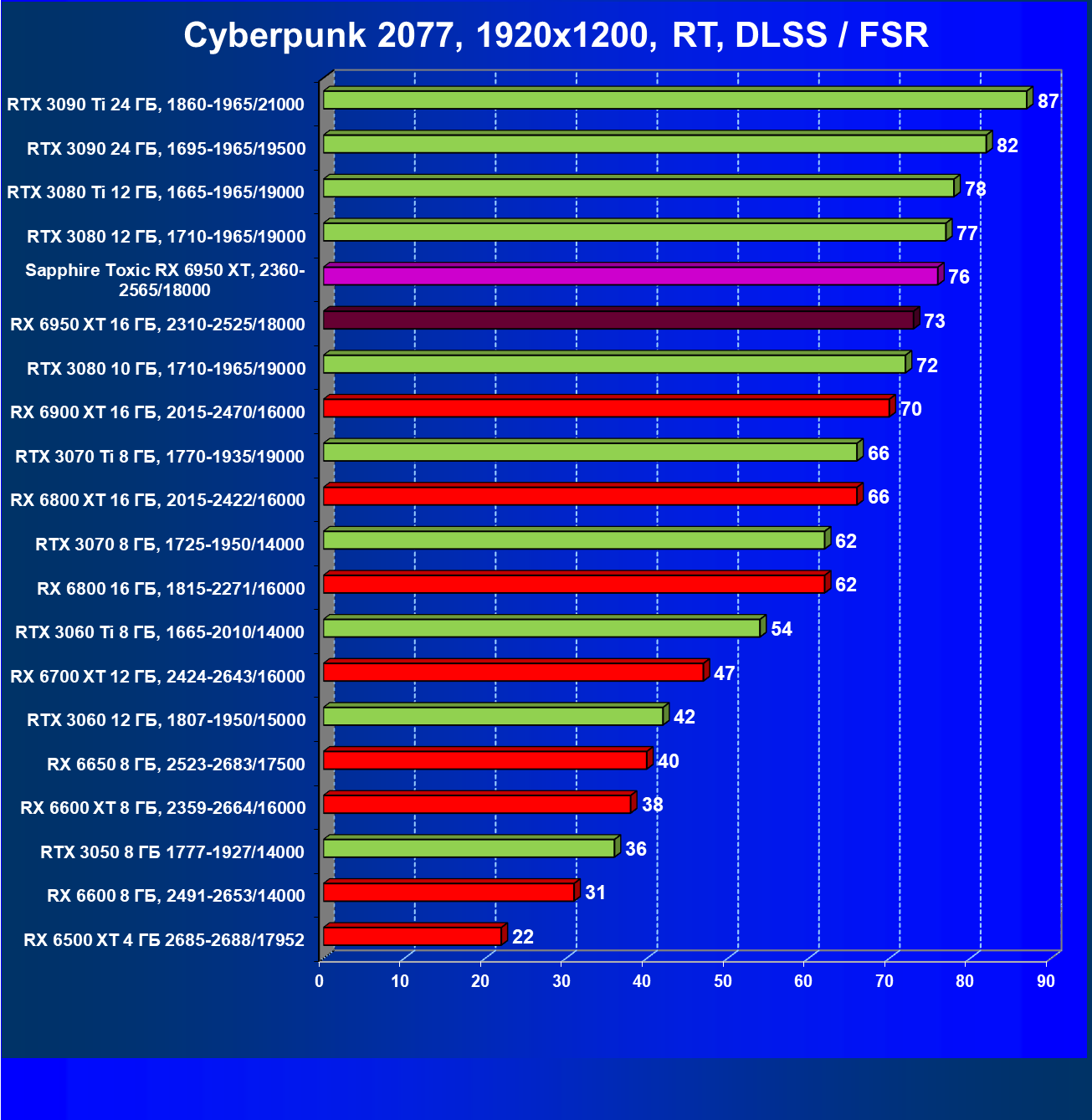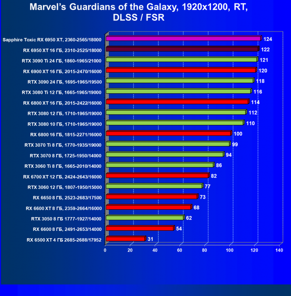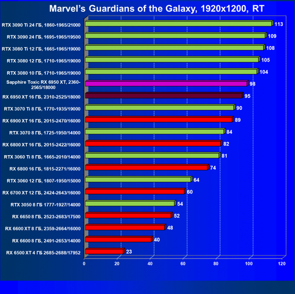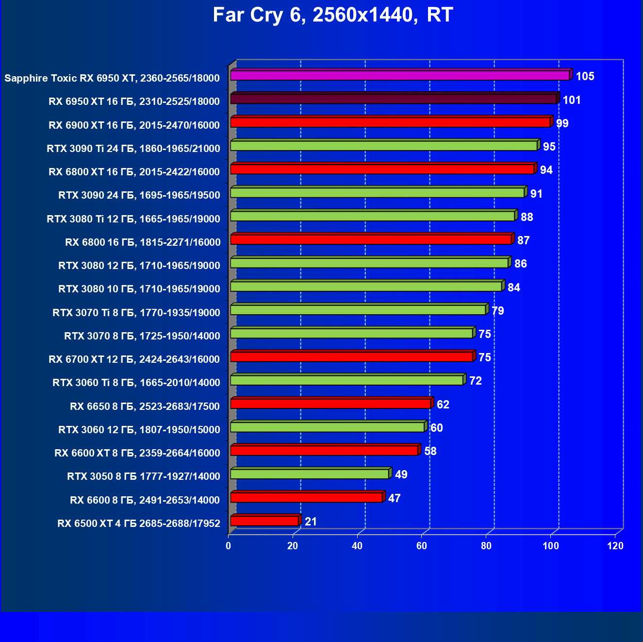 | 17 | Sapphire Toxic RX 6950 XT, 2360—2565/18000 | 79 | 904 | 114 000 |