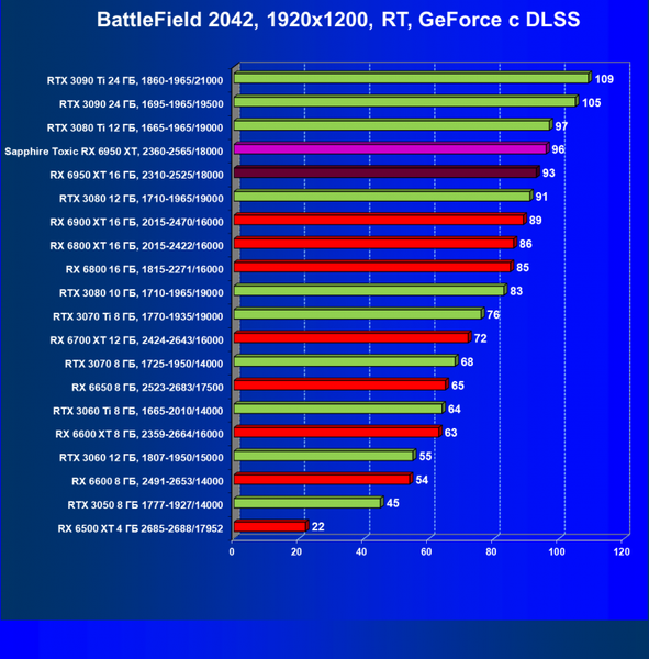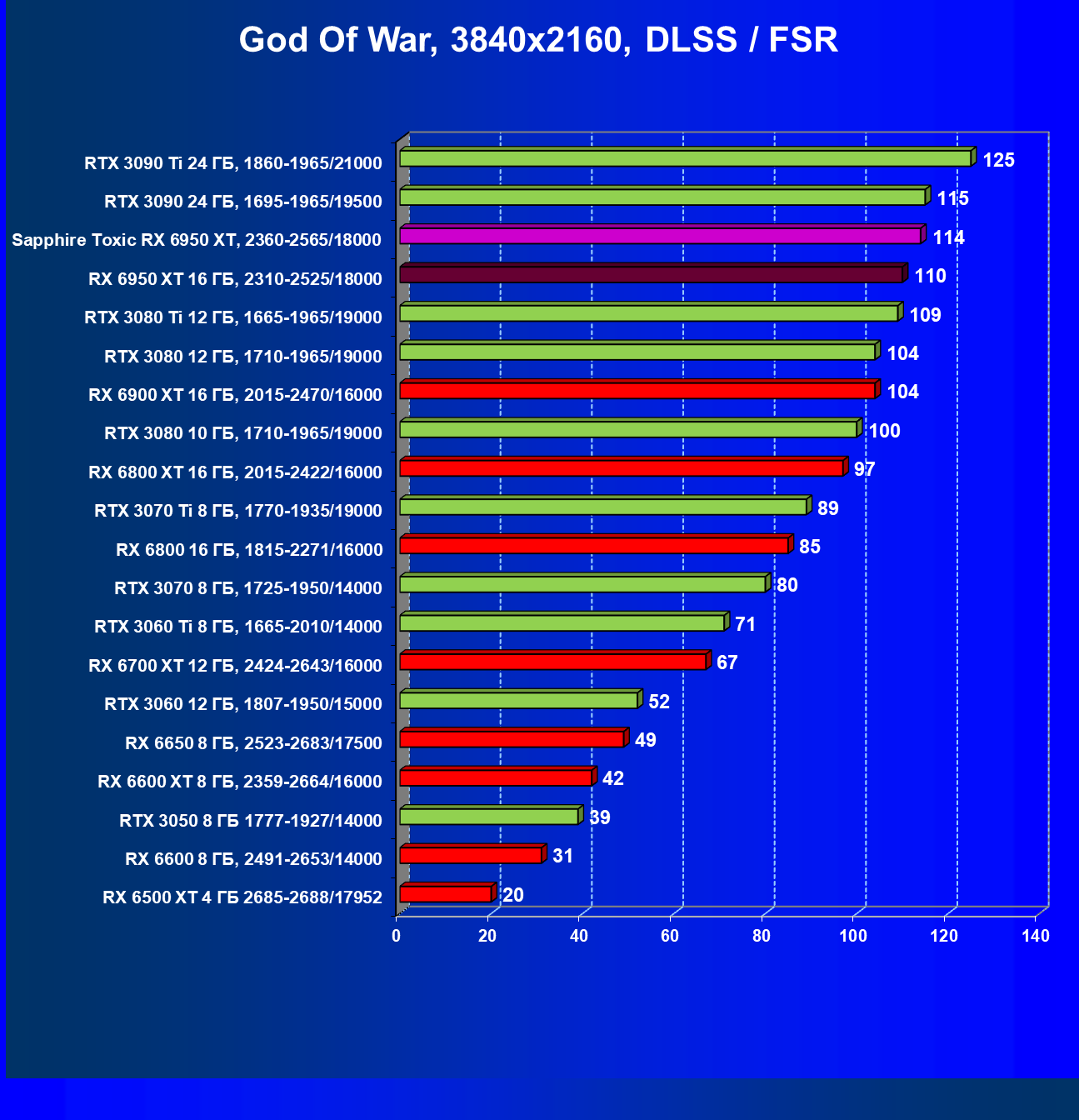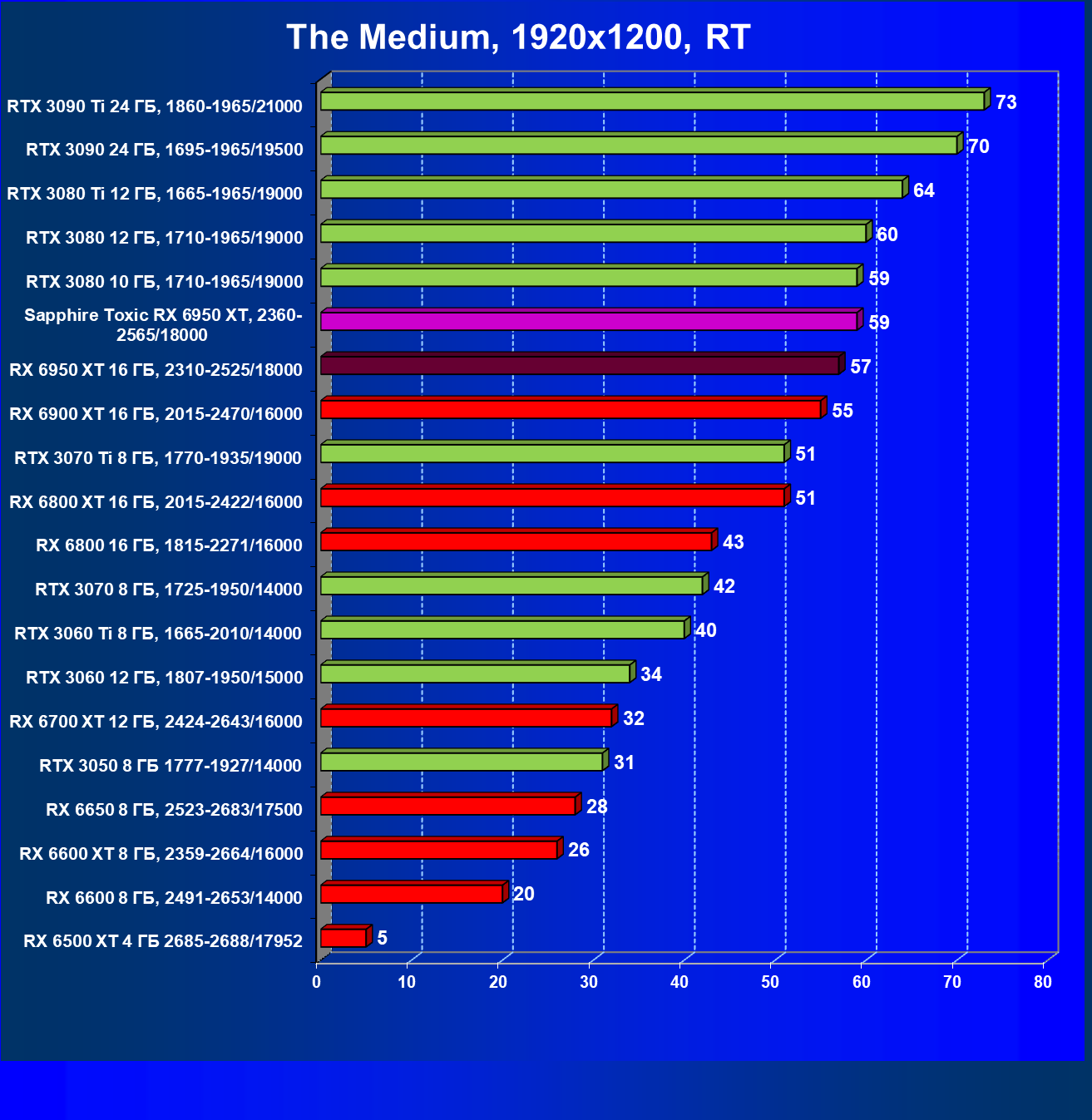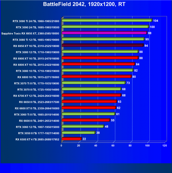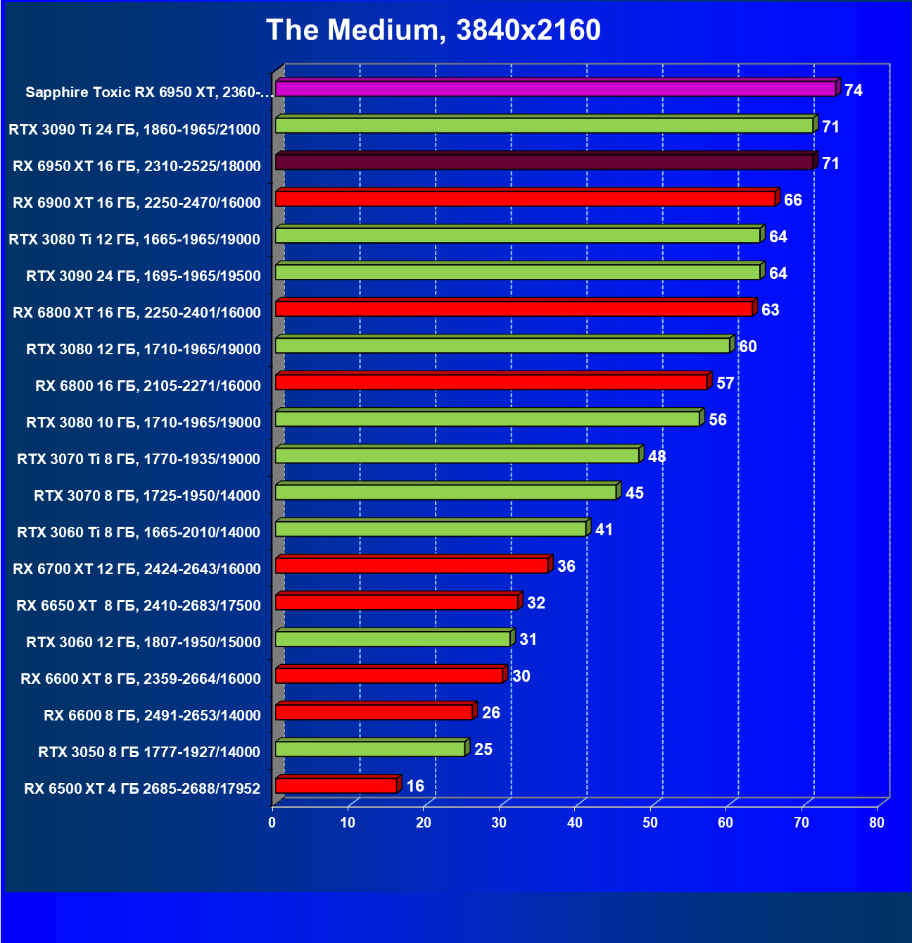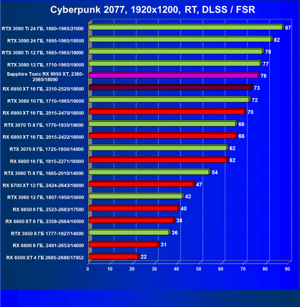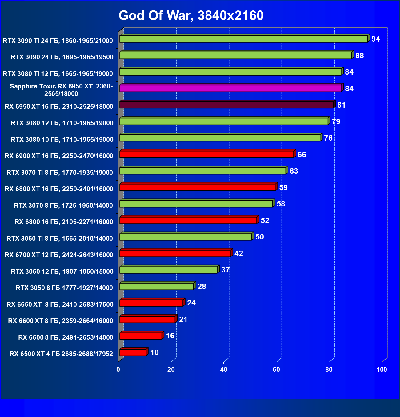 | 17 | Sapphire Toxic RX 6950 XT, 2360—2565/18000 | 79 | 904 | 114 000 |