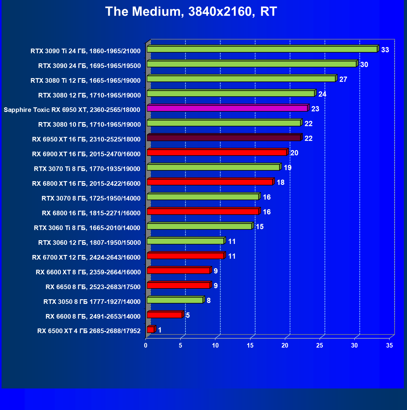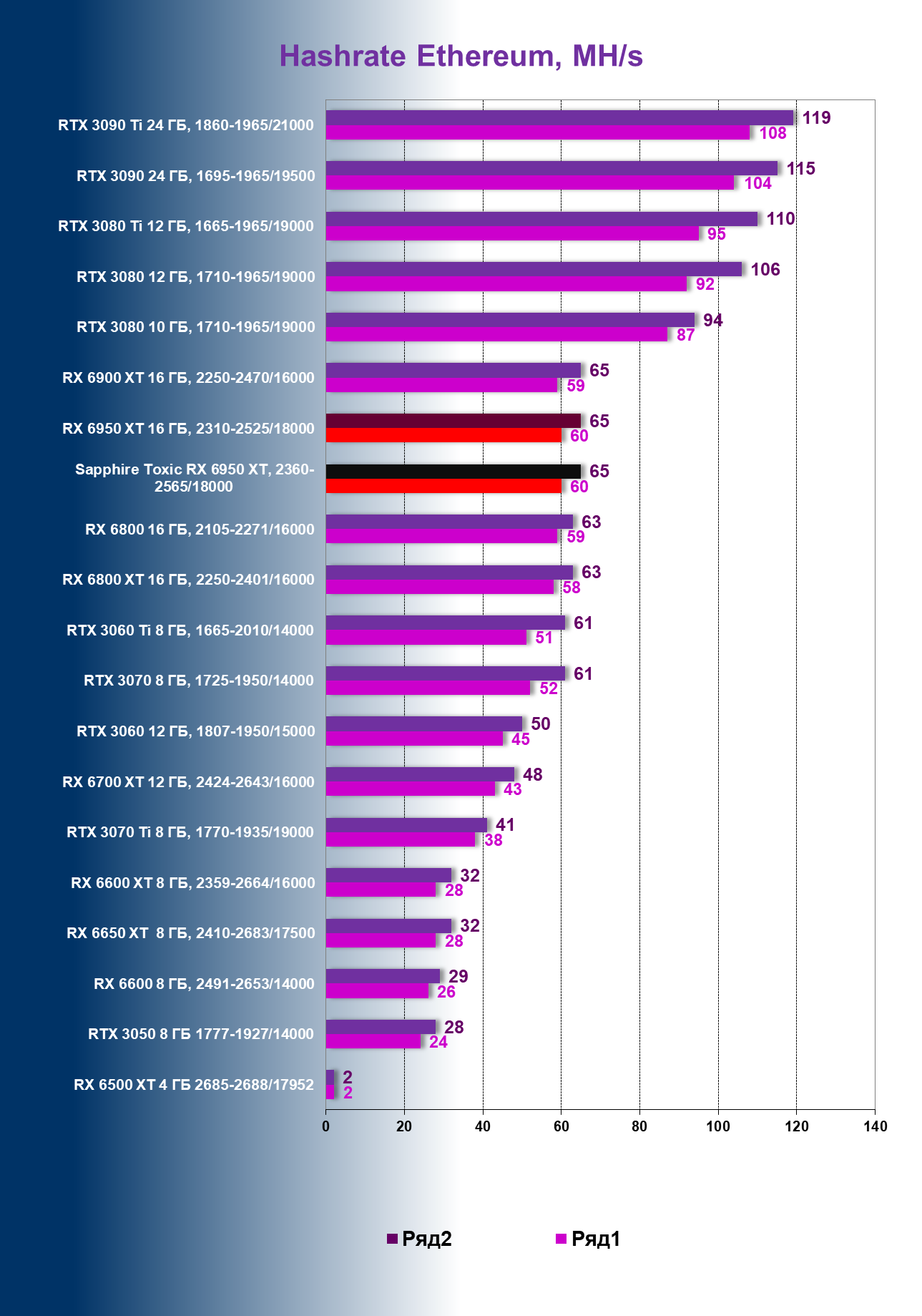 | 01 | Sapphire Toxic RX 6950 XT, 2360—2565/18000 | 461 | 40 | 114 000 |