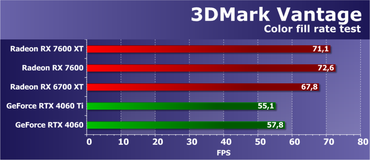 Если посмотреть на энергоэффективность, то GeForce RTX 4060 и GeForce RTX 4060 Ti — в лидерах, а Radeon RX 7600 XT до них очень далеко.