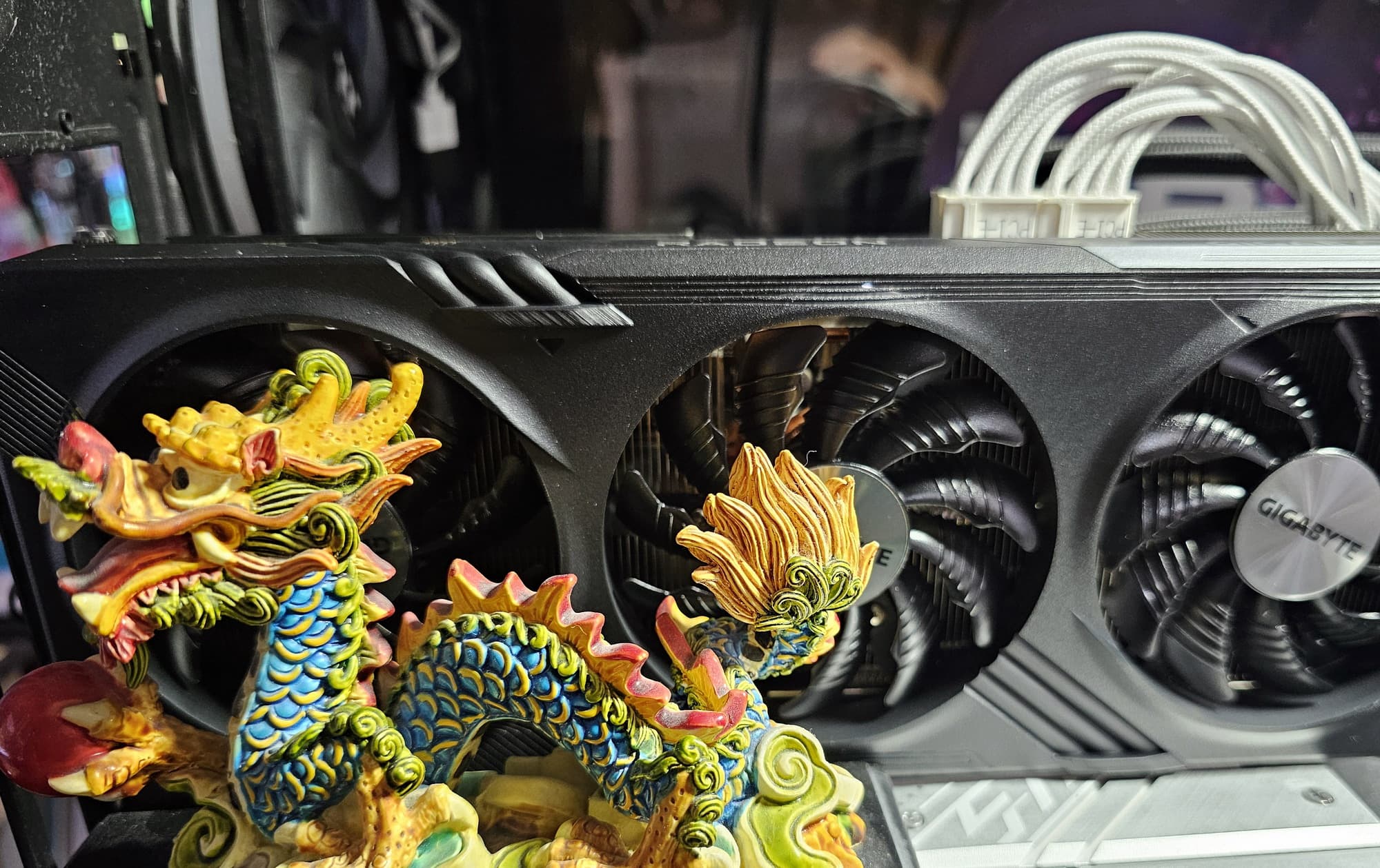 Конкретная протестированная карта Gigabyte Radeon RX 7600 XT Gaming OC 16G (16 ГБ) сравнительно компактная по меркам современных решений, но все-таки занимает три слота в системном блоке. Использованная СО не слишком шумная, а карта, между тем, может потреблять до 200 Вт (и имеет два стандартных 8-контактных разъема питания).