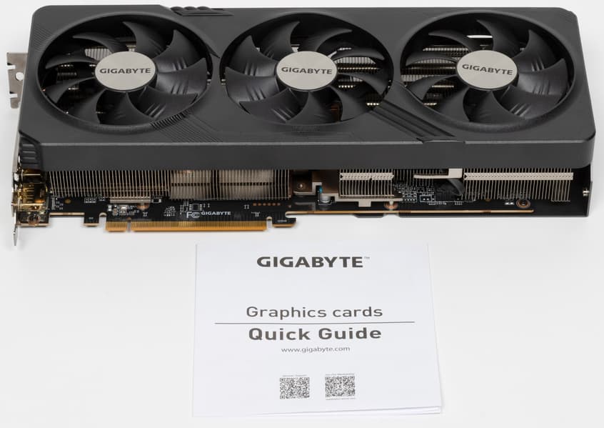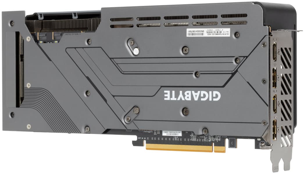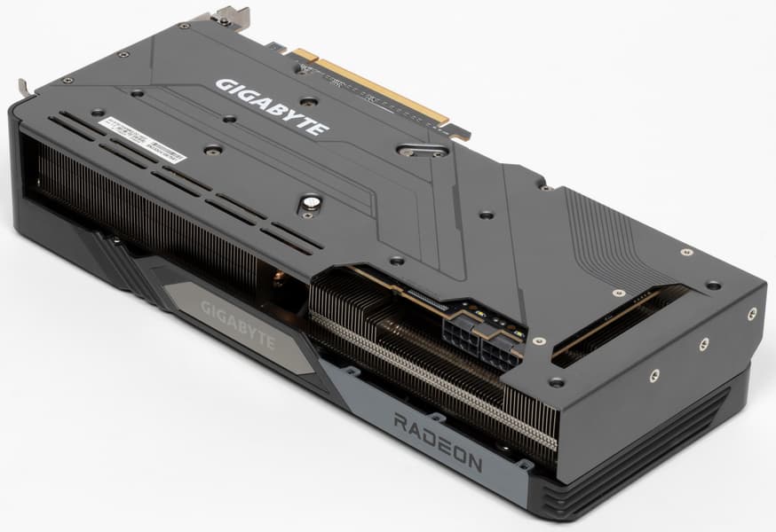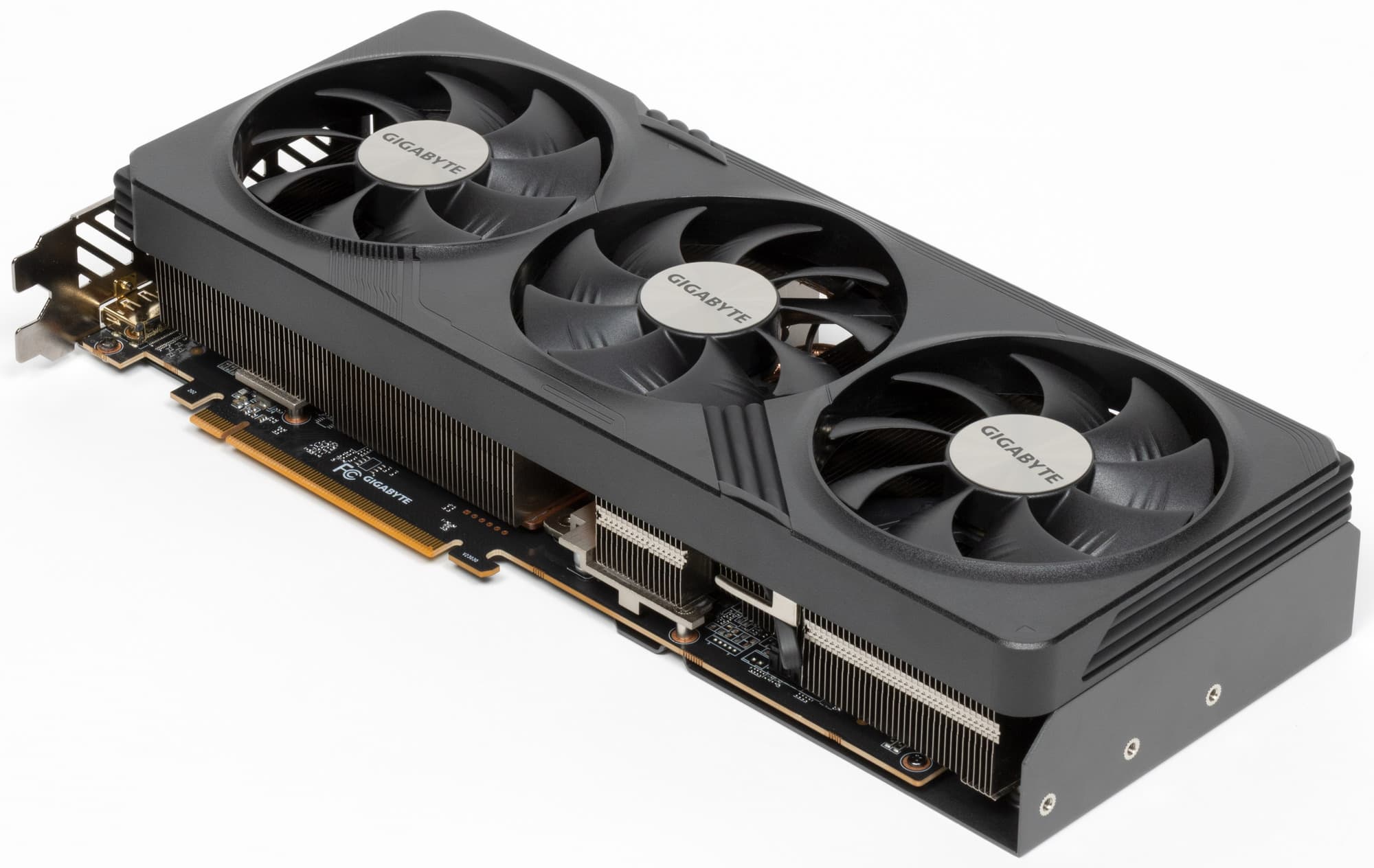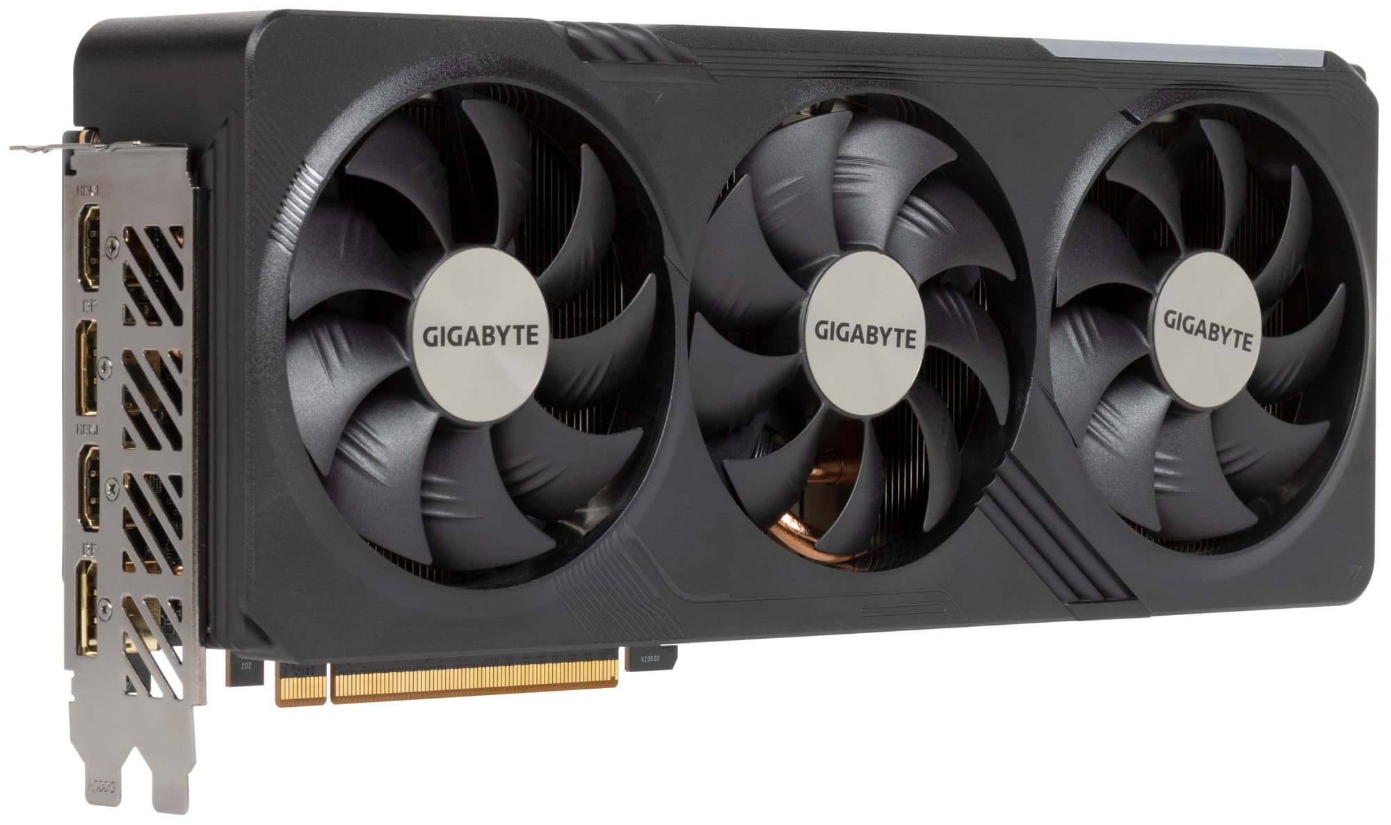 Конкретная протестированная карта Gigabyte Radeon RX 7800 XT Gaming OC 16G (16 ГБ) имеет стандартные размеры, занимает три слота в системном блоке. Использованный кулер довольно шумный, но вполне эффективный, карта может потреблять до 260 Вт и имеет два стандартных 8-контактных разъема питания.