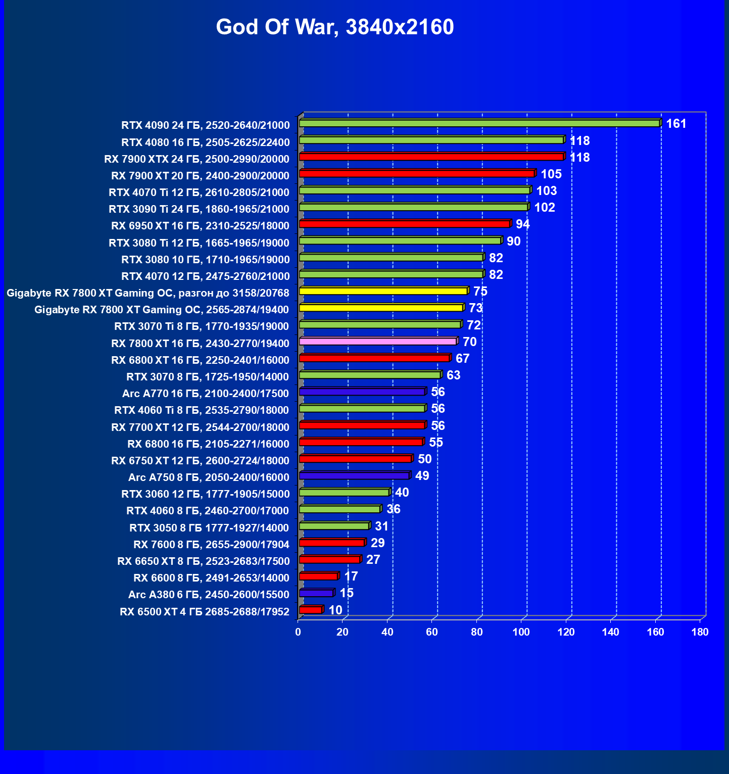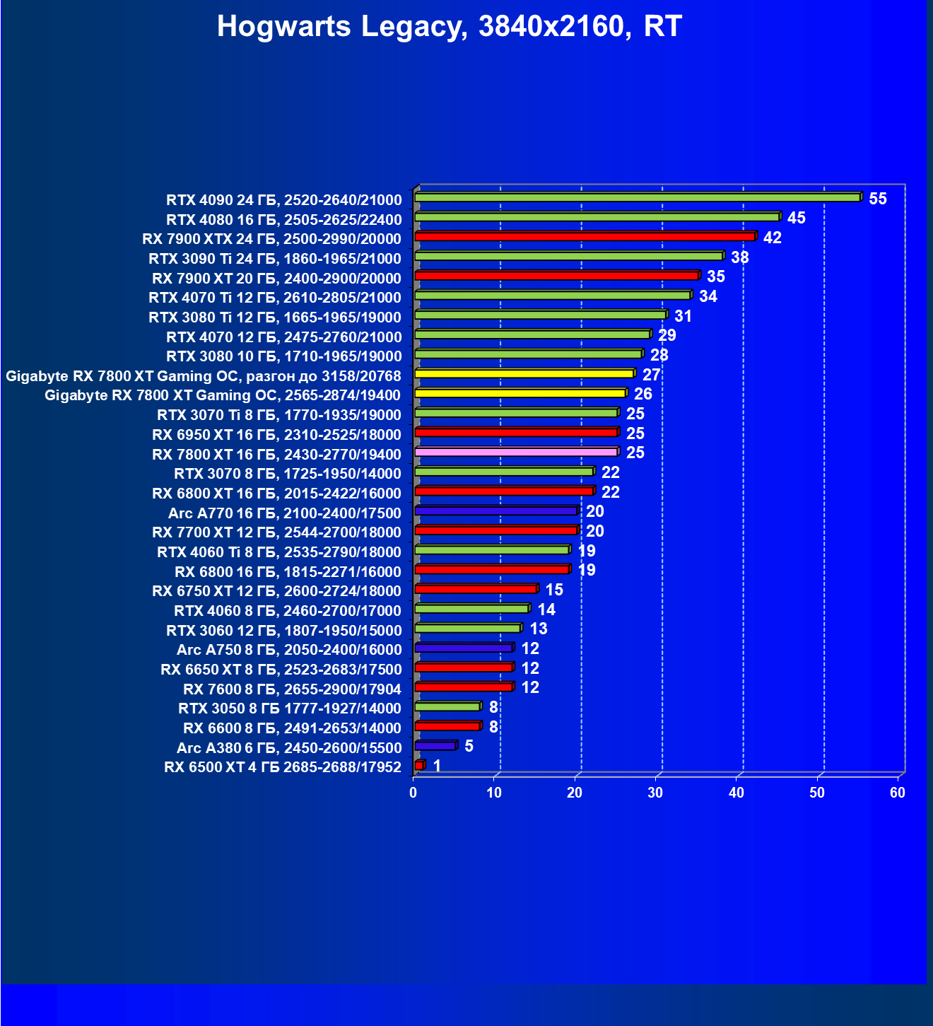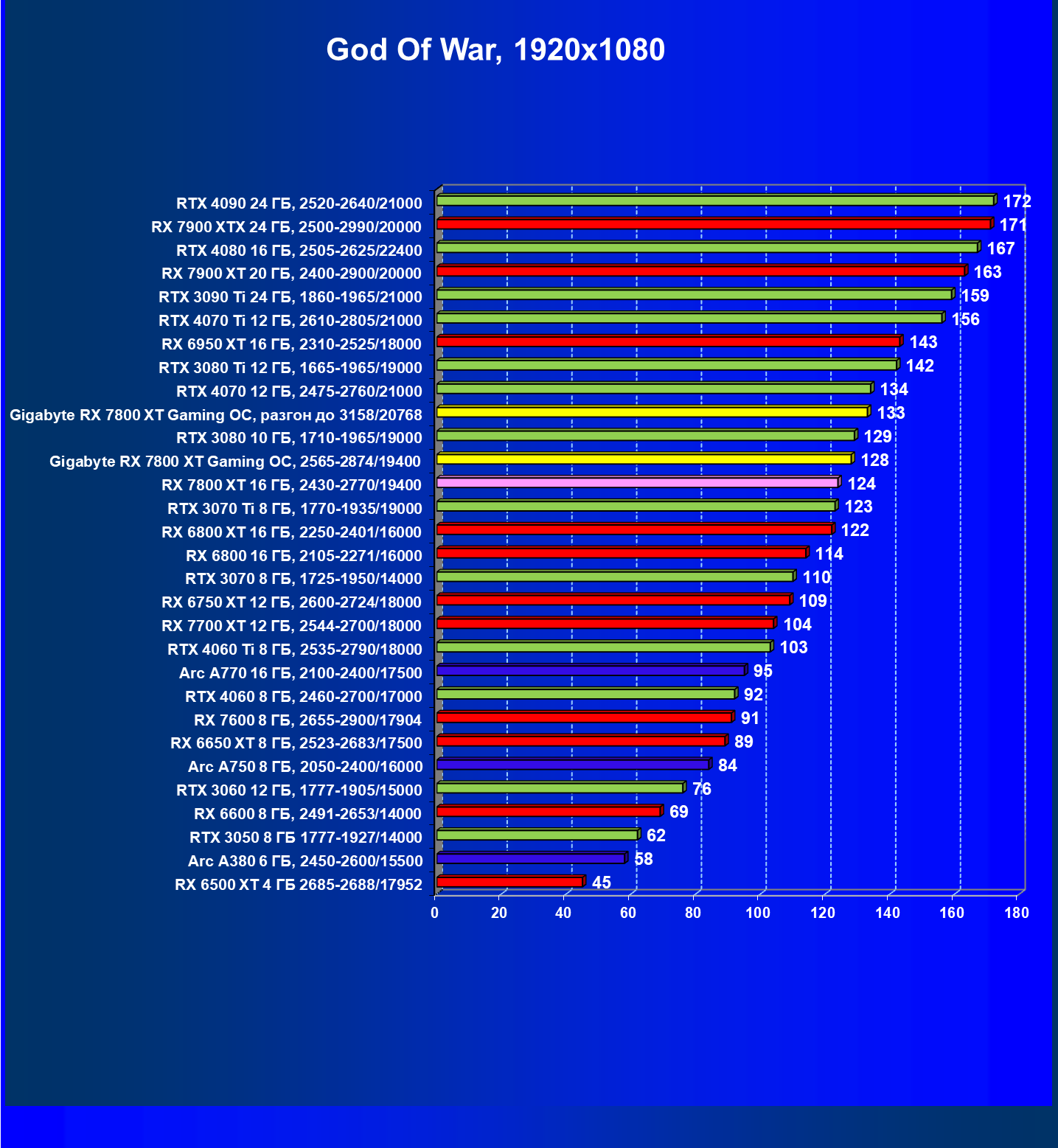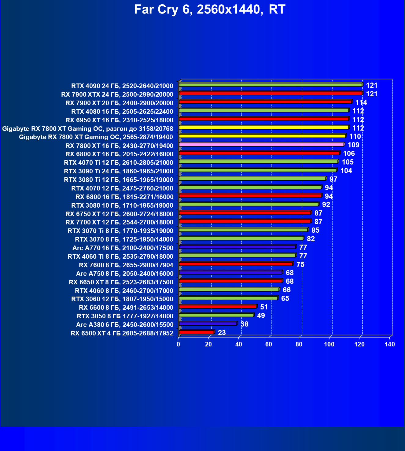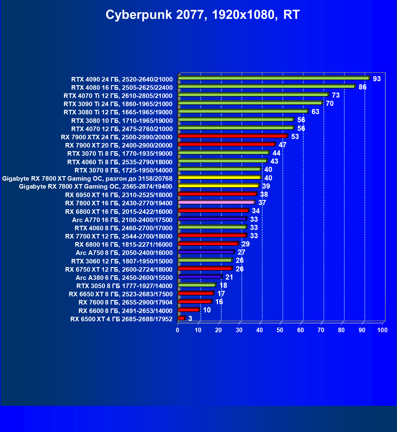 | 11 | RX 7800 XT 16 ГБ, 2430—2770/19400 | 543 | 86 | 63 000 |