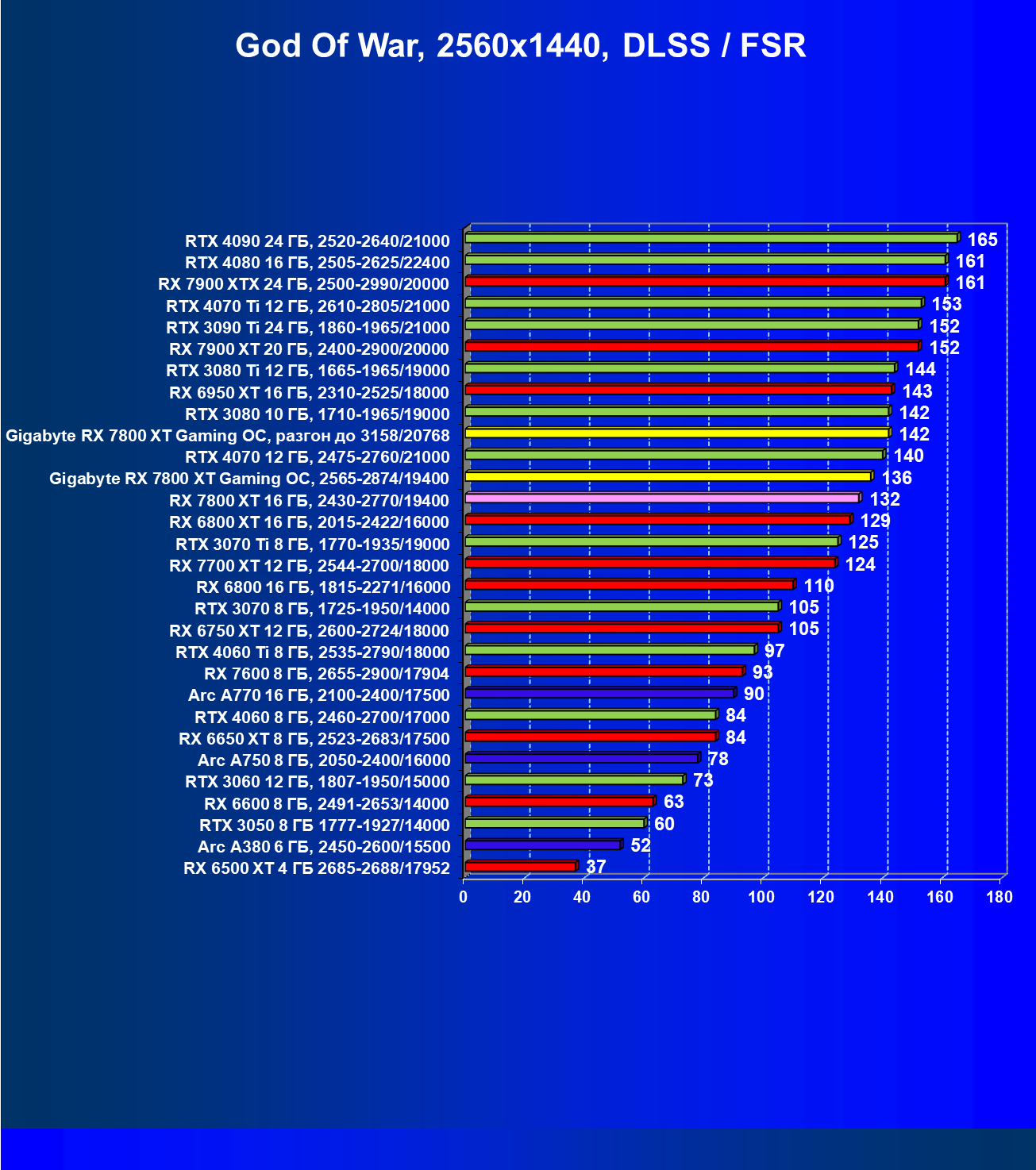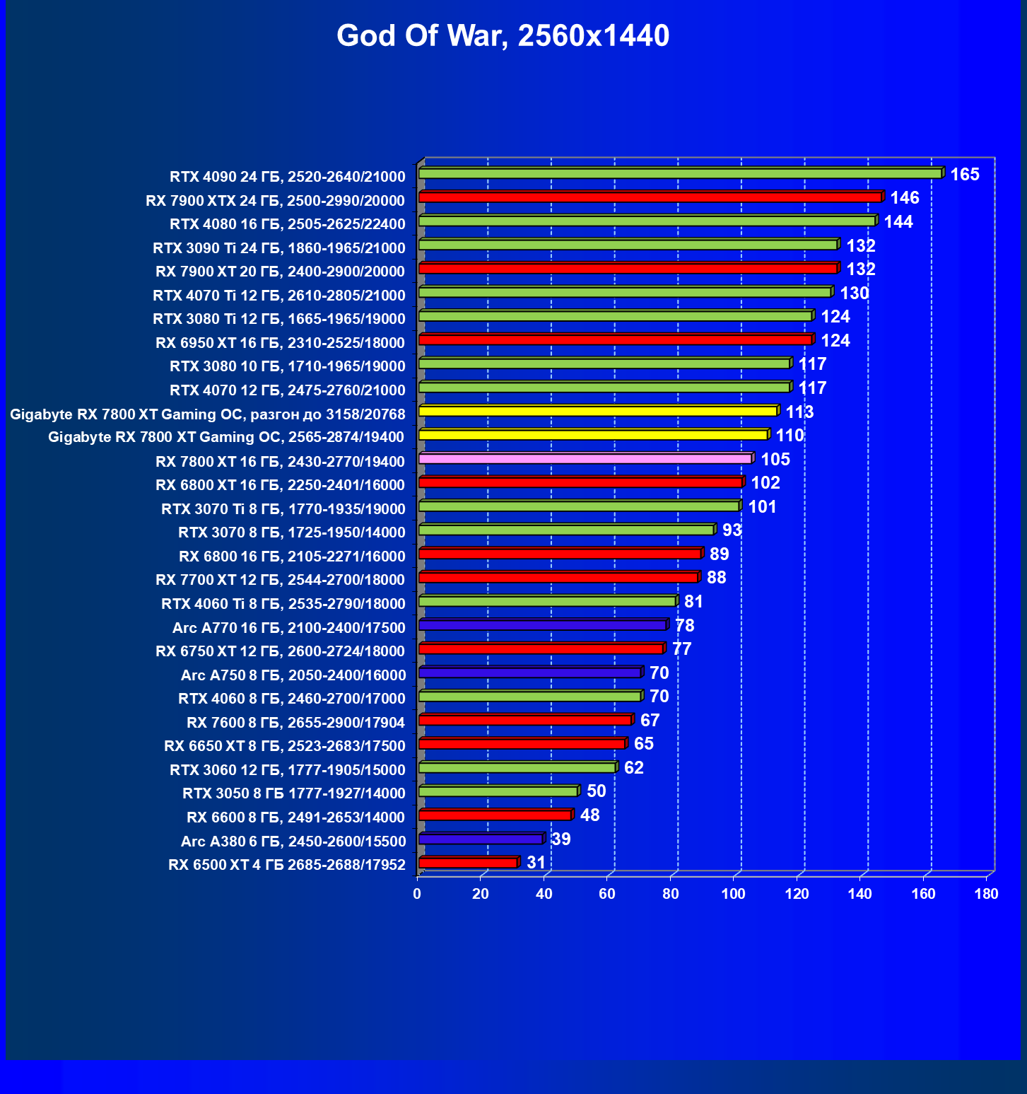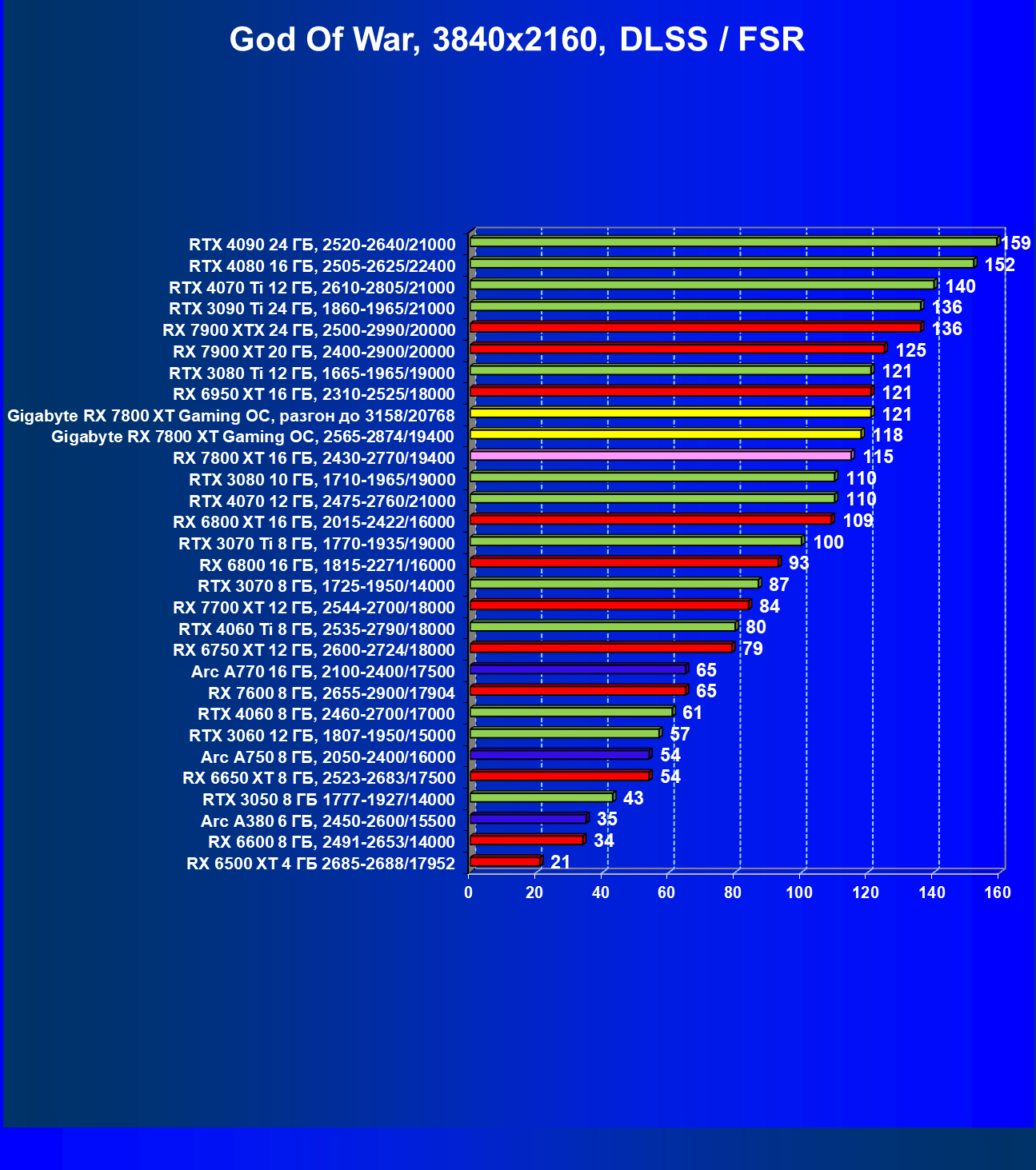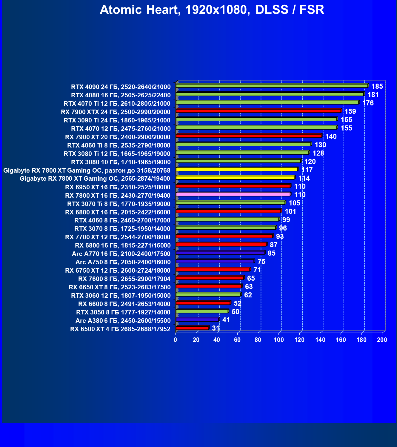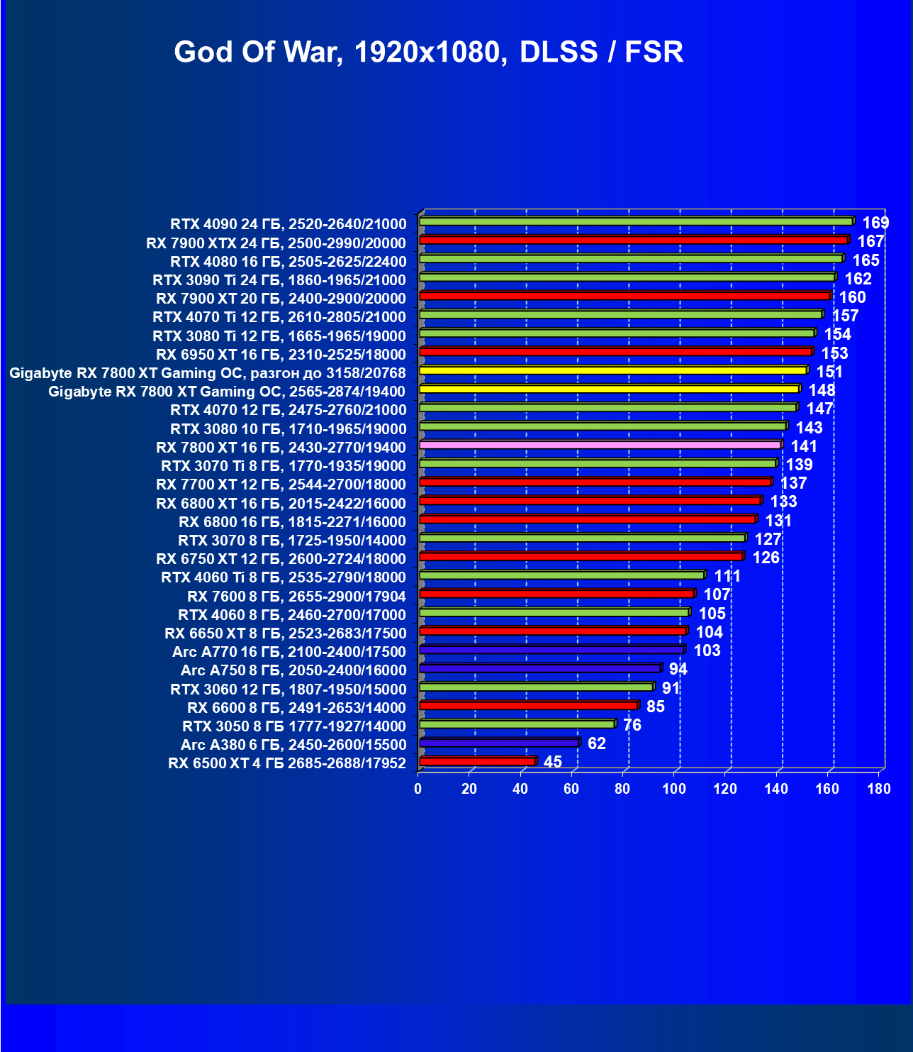 | 11 | RX 7800 XT 16 ГБ, 2430—2770/19400 | 543 | 86 | 63 000 |