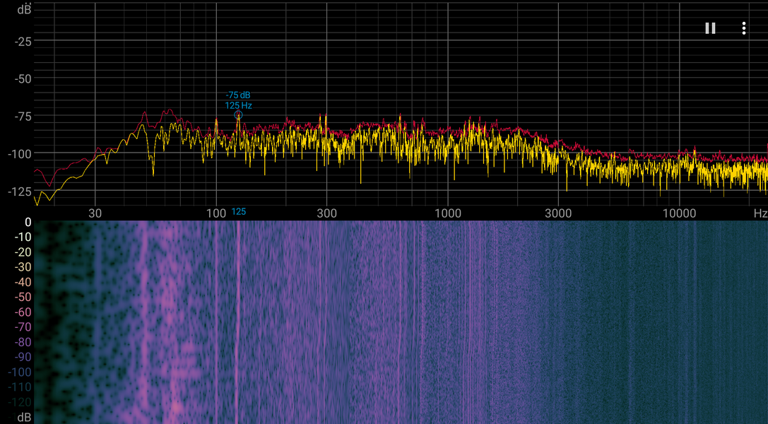 Спектрограмма шума ниже. Был замечен некоторый звенящий звук от вентиляторов.