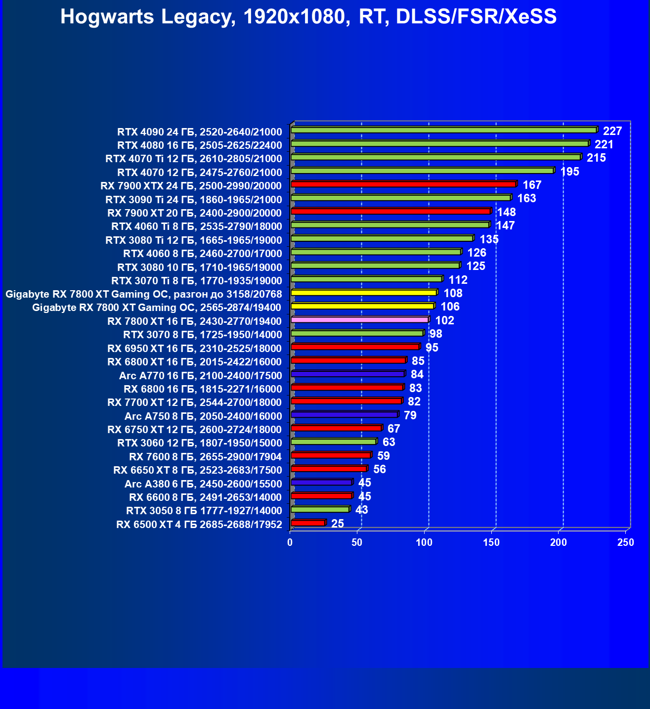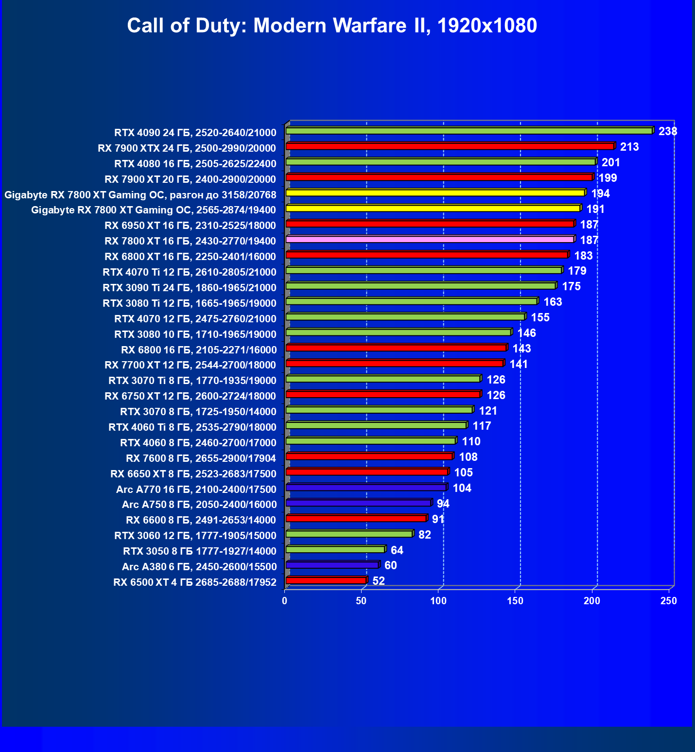 | 09 | Gigabyte RX 7800 XT, 2565—2874/19400 | 562 | 88 | 64 000 |