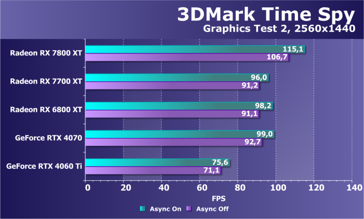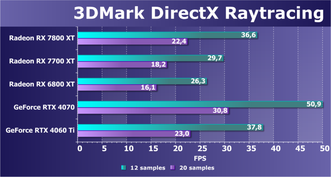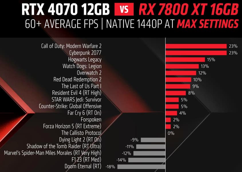 Однако из-за более эффективной работы GeForce RTX 4070 с трассировкой лучей и наличия DLSS 3 этот конкурент опережает Radeon RX 7800 XT, хотя последний немного дешевле.