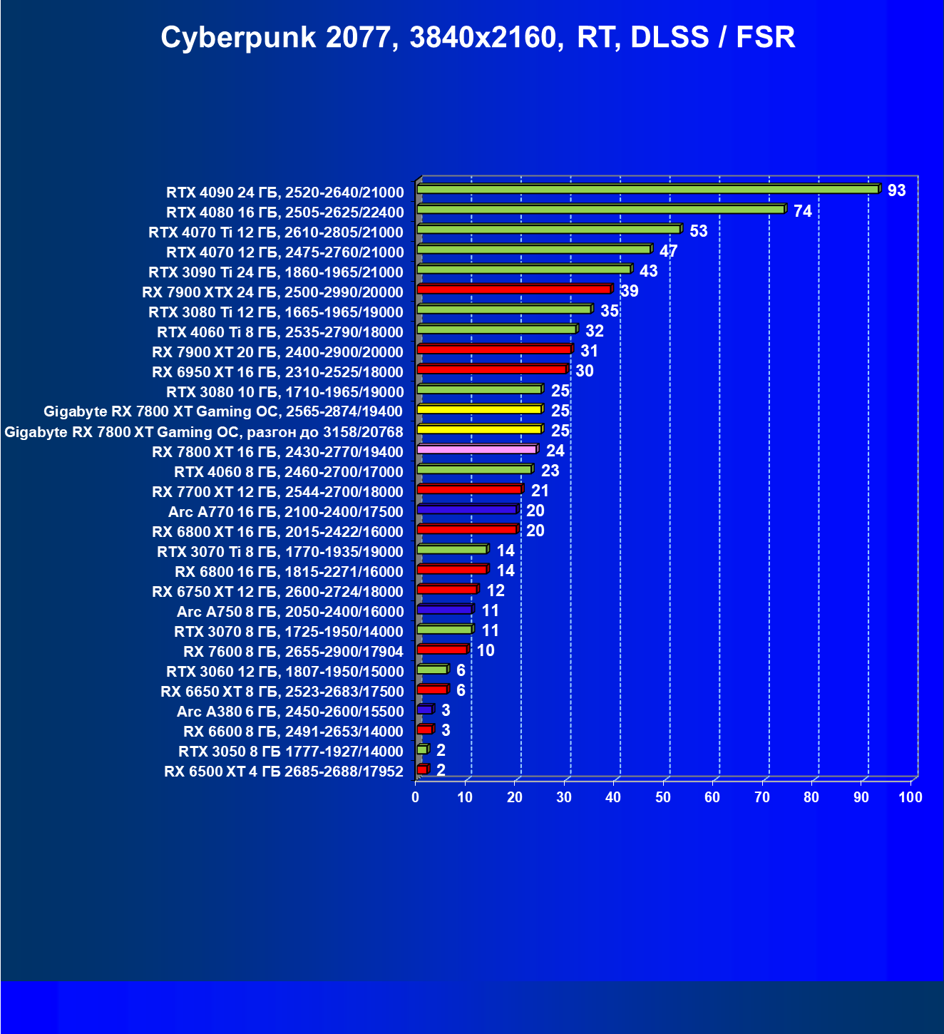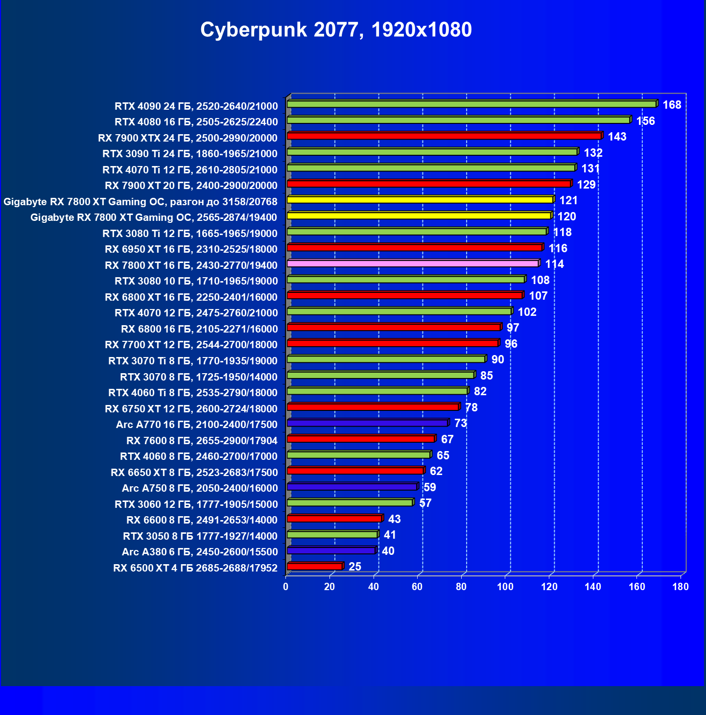 | 08 | Gigabyte RX 7800 XT, разгон до 3158/20768 | 577 | 90 | 64 000 |